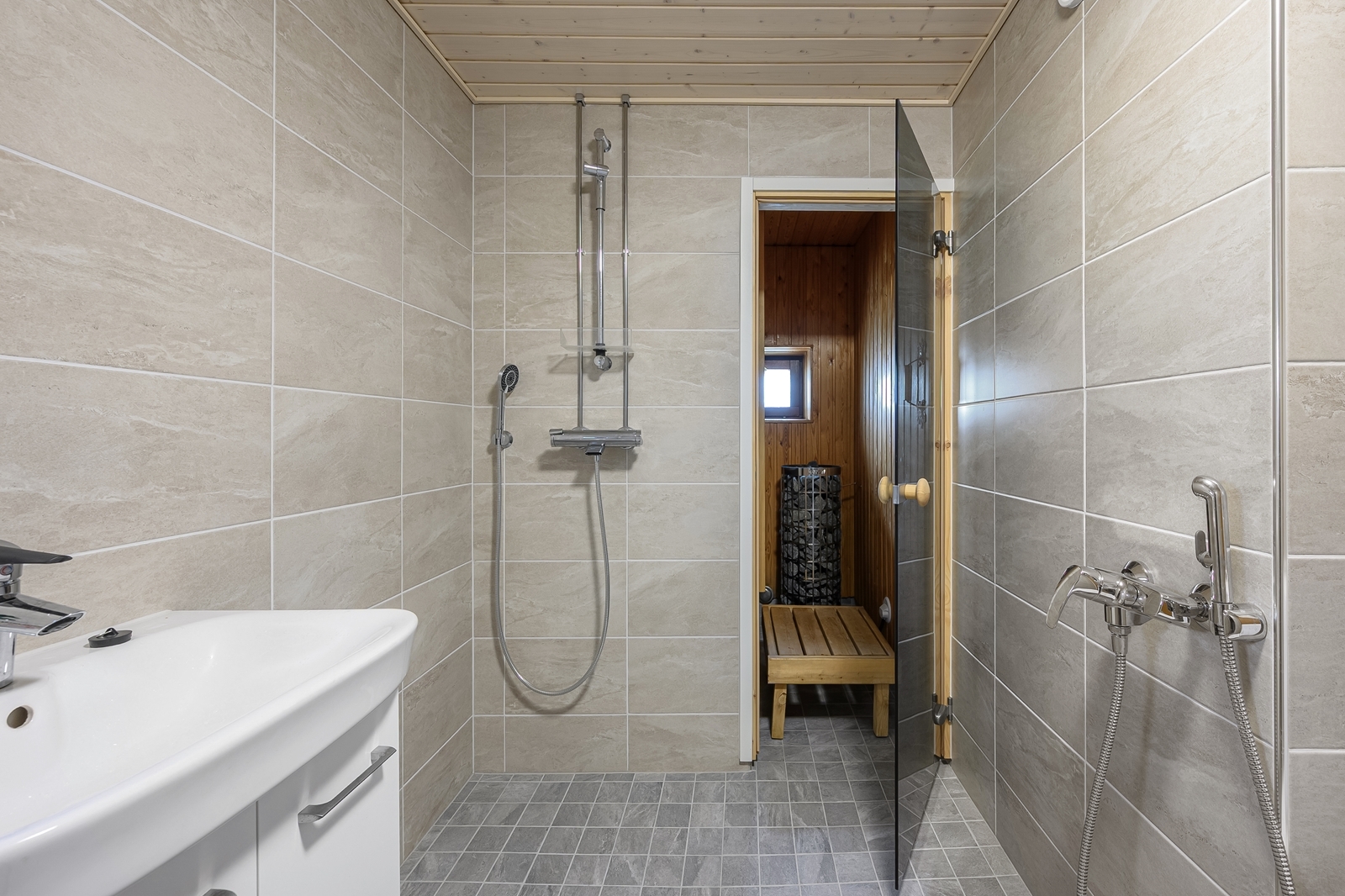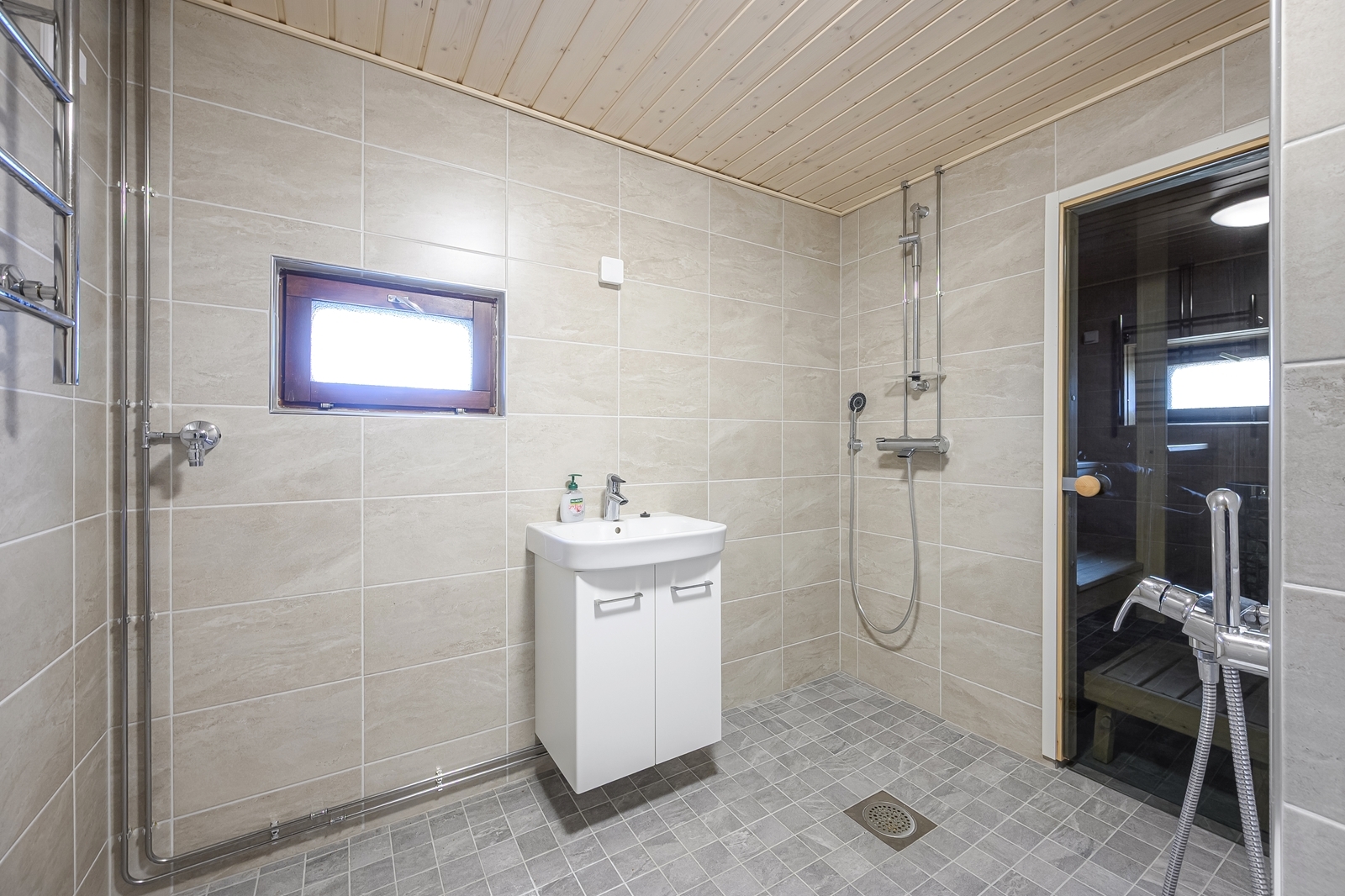 | Saunan kuvaus | Seinät (puu), lattiat (laatta), Sähkökiuas |