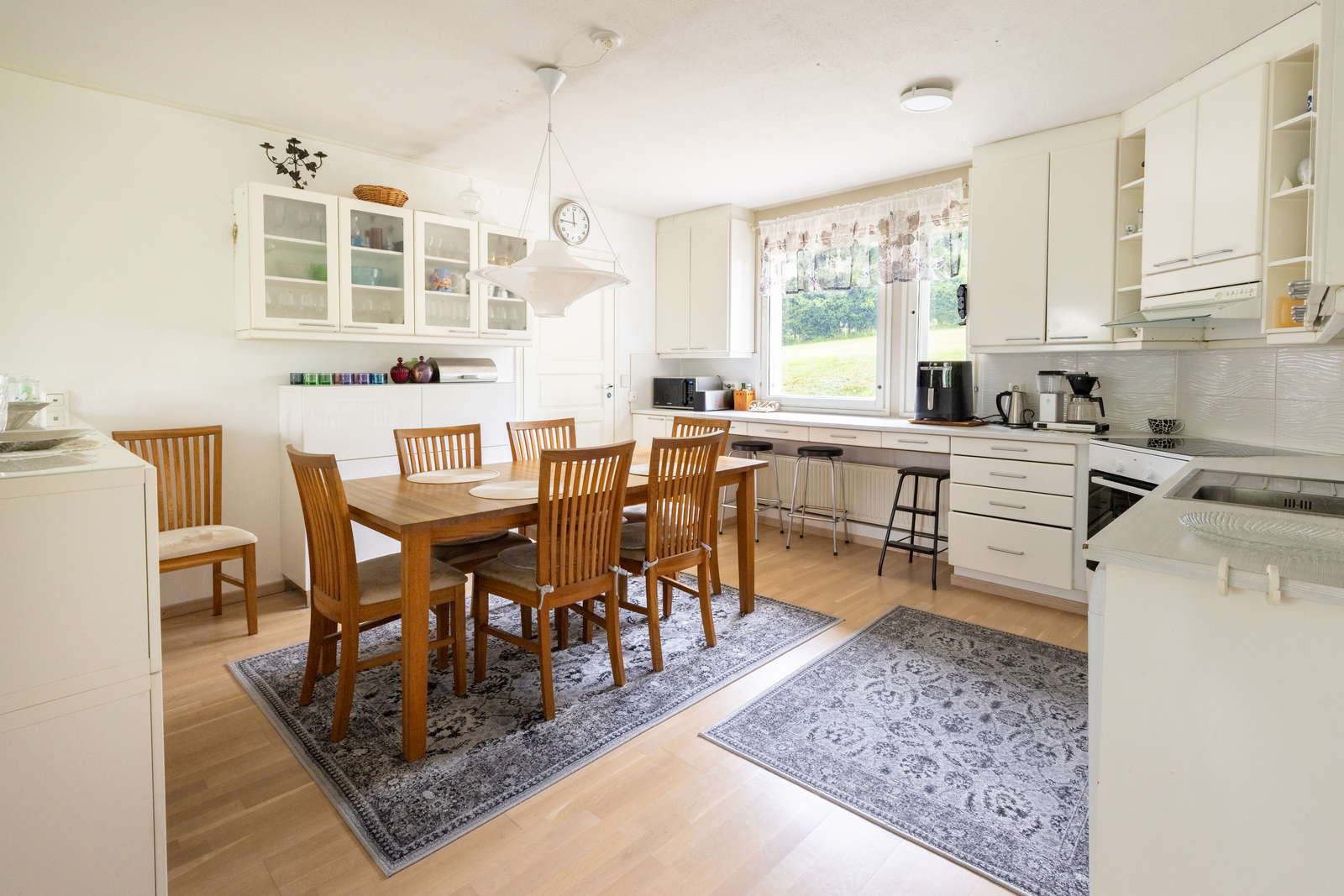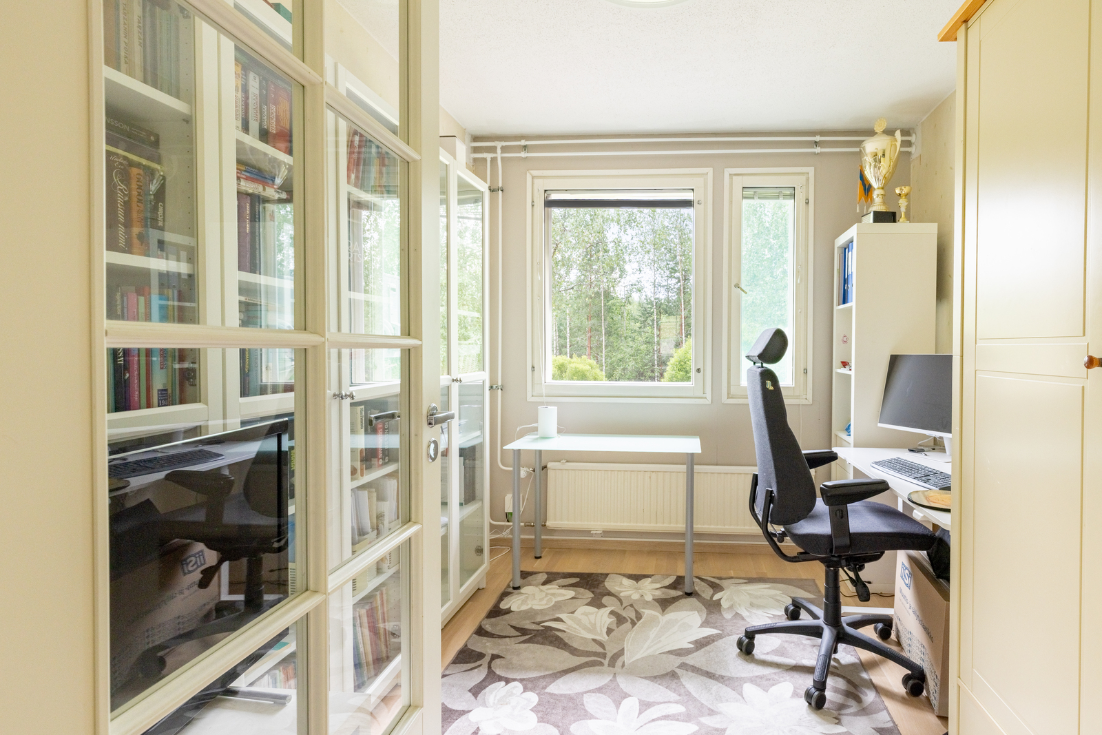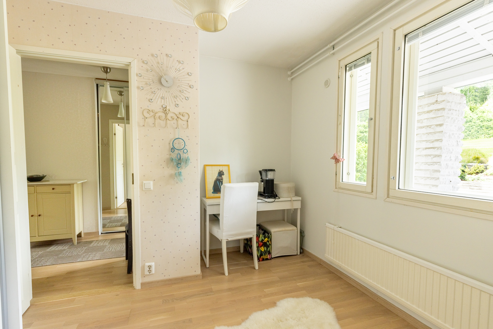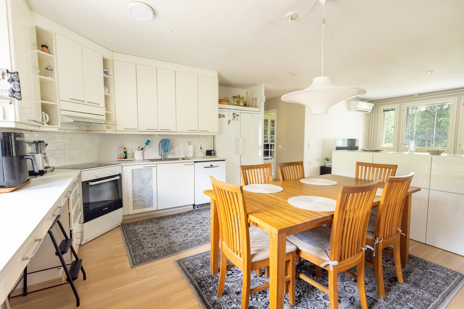 Tämä viihtyisä ja hyvin pidetty Jukkatalon omakotitalo (155 m² + 19 m²) tarjoaa toimivat tilat yhdessä tasossa. Talossa on olohuone, keittiö, takkahuone, saunaosasto, kodinhoitohuone, kolme makuuhuonetta, vaatehuone sekä autotalli ja varasto. Lasitettu terassi jatkaa oleskelua pitkälle syksyyn.
