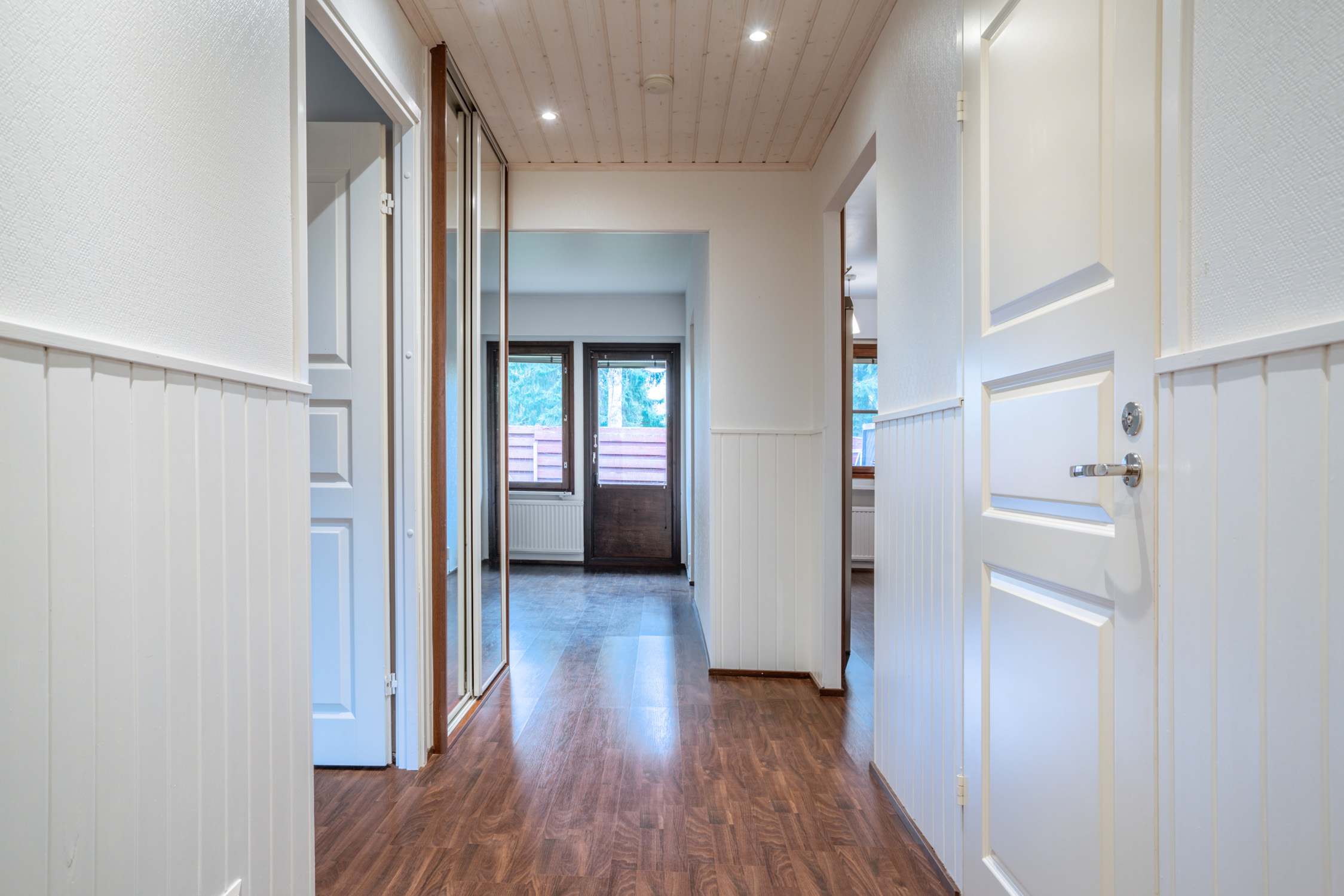 Keittiö on uusittu vuonna 2013, ja pintaremonttia on tehty reilusti. Olohuoneen ja makuuhuoneen laminaattilattiat sekä tapetoidut ja maalatut seinät luovat kodikkaan tunnelman. Kylpyhuoneessa riittää tilaa ja saunassa pystyy rentoutumaan.