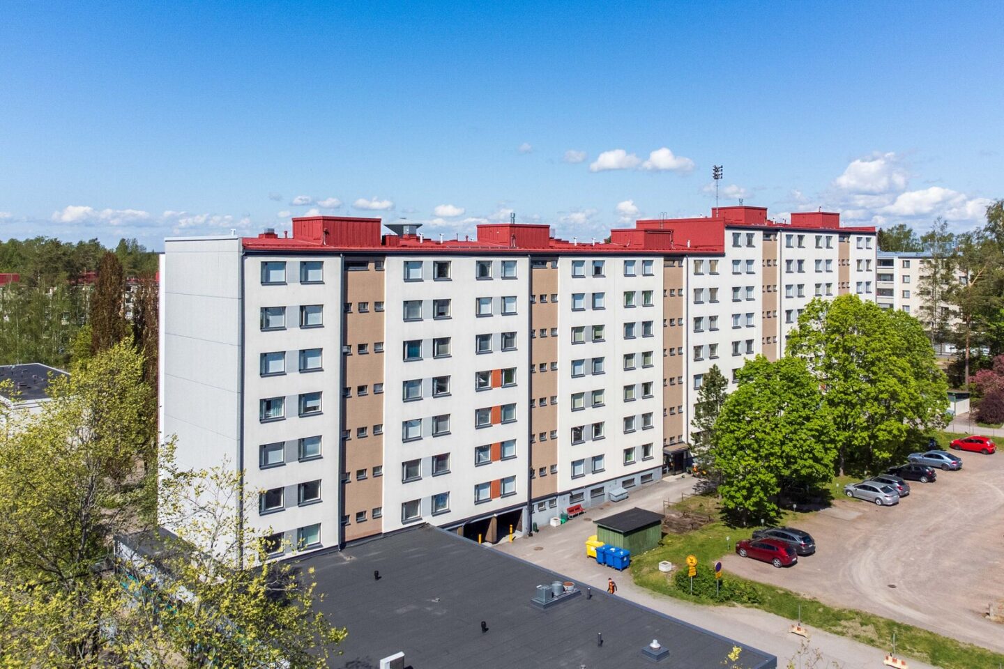 | Tehdyt remontit | Ikkunoiden ulkopuoliset puuosat puunsuojakäsitelty (huoneistoparvekkeiden ikkunoita lukuun ottamatta), pielilaudat, vaakavesikourut ja syöksytorvet maalattu – 1979 Yläpohja lisälämmöneristetty puhallusvillalla Parvekkeet kunnostettu ja maalattu, ikkunoiden ulkopuoliset puuosat puunsuojakäsitelty ja betoniset välipellit maalattu (länsijulkisivu) – 1982–1983 Elementtisaumat uusittu Peltilistoja maalattu ja ylimpien parvekkeiden kattojen vesieristykset uusittu – 1989 Saunojen lauteet uusittu – 1992 C- ja D-portaiden lippojen vesieristyksien uusinta – 1995 Parvekkeet peruskorjattu ja länsisivun ikkunat ja vesipellit maalattu – 1995 Liikesiivien ja varaston vesikatot kunnostettu ja liikesiivien takasivun ikkunat uusittu – 1997 Ylimpien huoneistoparvekkeiden räystäisiin asennettu kourut ja vedenpoistojärjestelmä – 1999 Itäsivun ikkunat ja betonipeilit maalattu sekä liikesiivin julkisivut kunnostettu – 1999 Molemmat saunasaunat kunnostettu – 2001 Porrashuoneiden maalaus ja hissikoriin pintakäsittelyt Kellarikäytävät ja kaikki yhteiset tilat maalauksin kunnostettu – 2003 Vaakavesikourut varustettu sisäkouruilla Elementtisaumat uusittu ja ikkunaliittymät päälle saumattu – 2004 Rakennuksen vesikatto maalauksin kunnostettu ja varustettu lumiseteillä – 2004–2007 Pääjulkisivut kunnostettu – 2006–2007 Julkisivujen betonirakenteille tehty kuntotutkimus ja korjausten suunnittelu – 2008–2009 Putkien julkisivujen lämpörapaus, parvekkeiden huoltomaalaus – 2009 Huoneistoikkunoiden ja parvekeovien uusinta – 2009 BC-saunasaunat kunnostettu – 2010 Porrasaulojen alakaiteet ja liikesiivien ikkunat sekä ulko-ovien uusinta – 2011 Parvekelippojen katot kunnostettu / teetetty – 2011 Kattosillat uusittu / Vesivek Oy – 2011 Korvausilmanventtiileiden puhdistus ja huoltokorjaukset – 2011 Vesikatteen pinnoitus ja osittainen syöksyjen uusiminen / Uudenmaan kattomaalaus ja huolto – 2012 Liikesiivien katto kunnostettu ja huoltokorjaus – 2013 Huoneistojen märkätilojen kuntokartoitus – 2016 Märkätilojen kuntokartoitus, Frontago Oy – 2017 Parvekkeiden kuntokuntkimus, Sitowise Oy – 2018 Julkisivujen kuntotutkimus, Sweco Taloyhtiöpalvelut Oy – 2019 Ikkunoiden kuntotutkimus – 2019 Parvekkeiden kuntotutkimus ja kunnostuksen suunnittelu / Sweco Oy – 2020 Ikkunoiden uusimisen suunnittelu ja korjaukset / Senaatti-kiinteistöt – 2021–2023 Parvekkeiden kunnostus, eteläsivun toteutus – 2023–2024 |