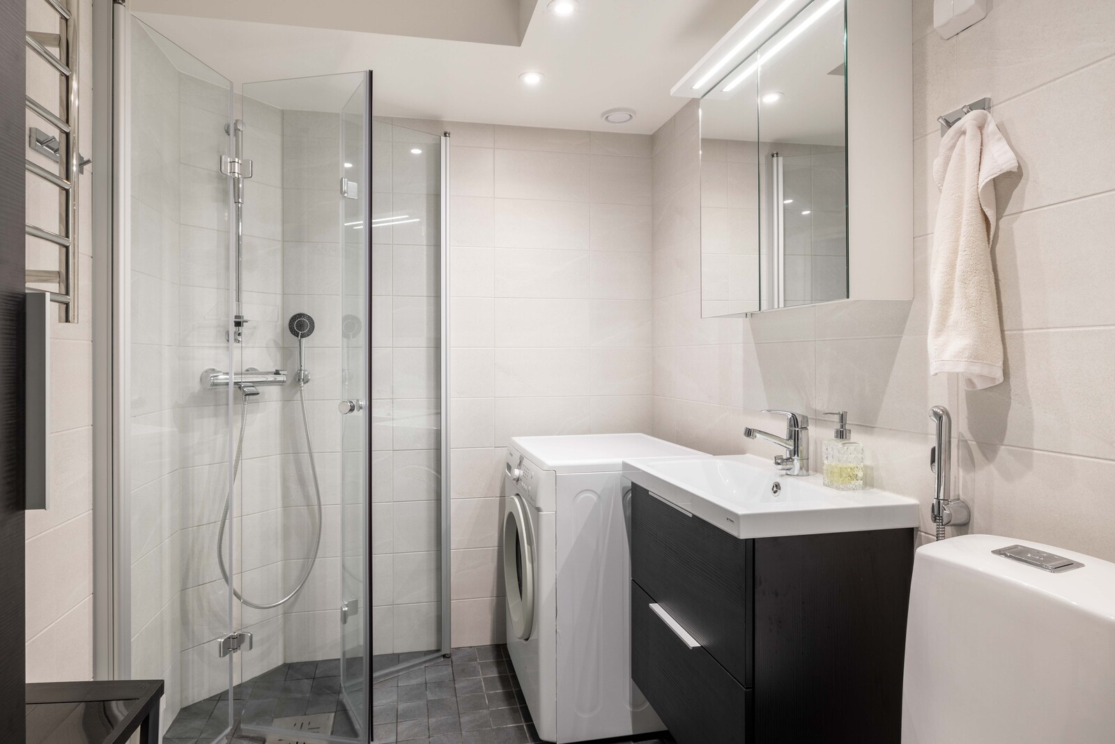 Kylpyhuone on tyylikkäästi remontoitu putkiremontin yhteydessä, ja koko taloyhtiö on hyvin hoidettu – suuret remontit on jo tehty, joten voit muuttaa huoletta ilman tulevia yllätyksiä.