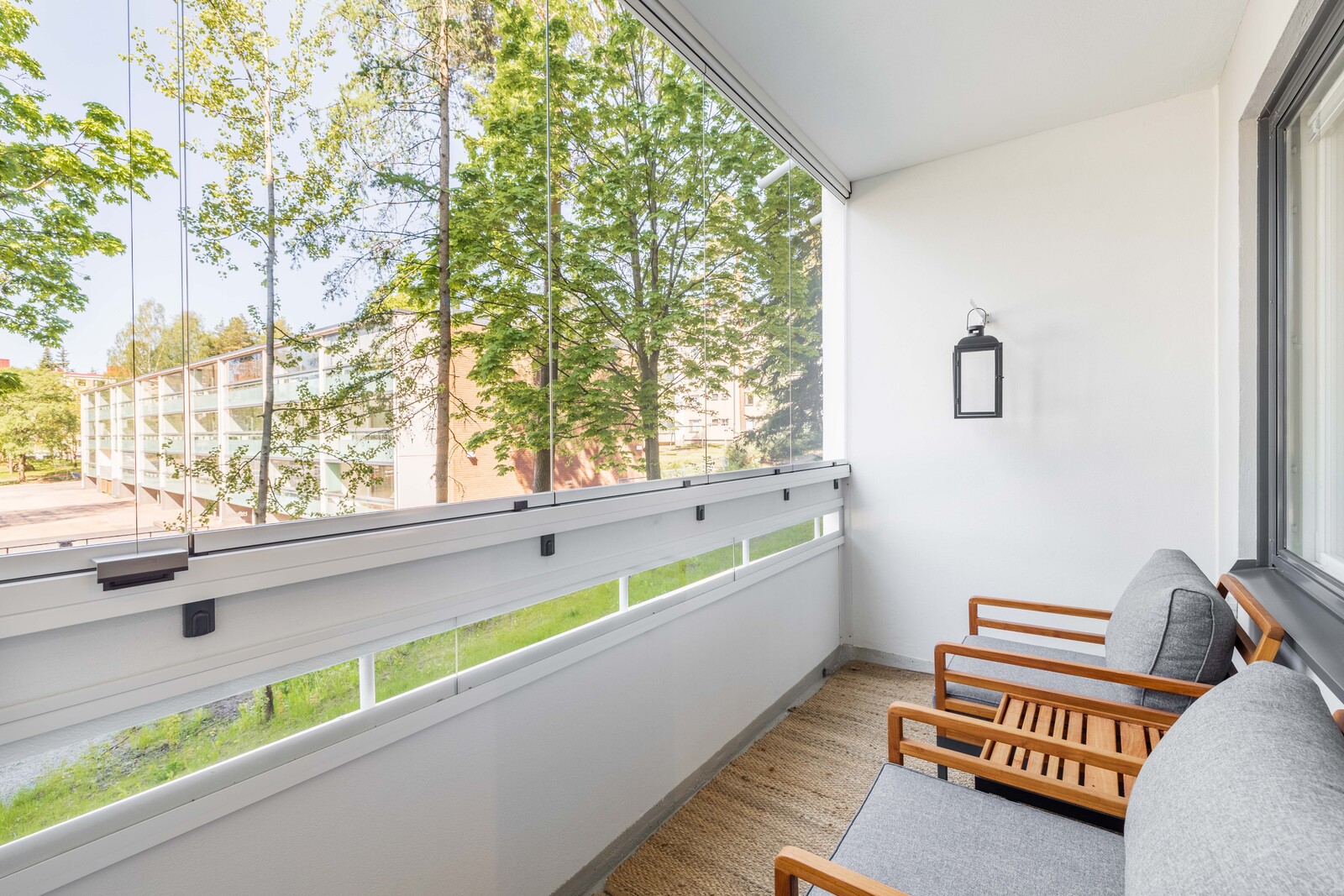 Valoisa ja avara kaksio rauhallisella sijainnilla – putkiremontoitu helmi Myyrmäessä