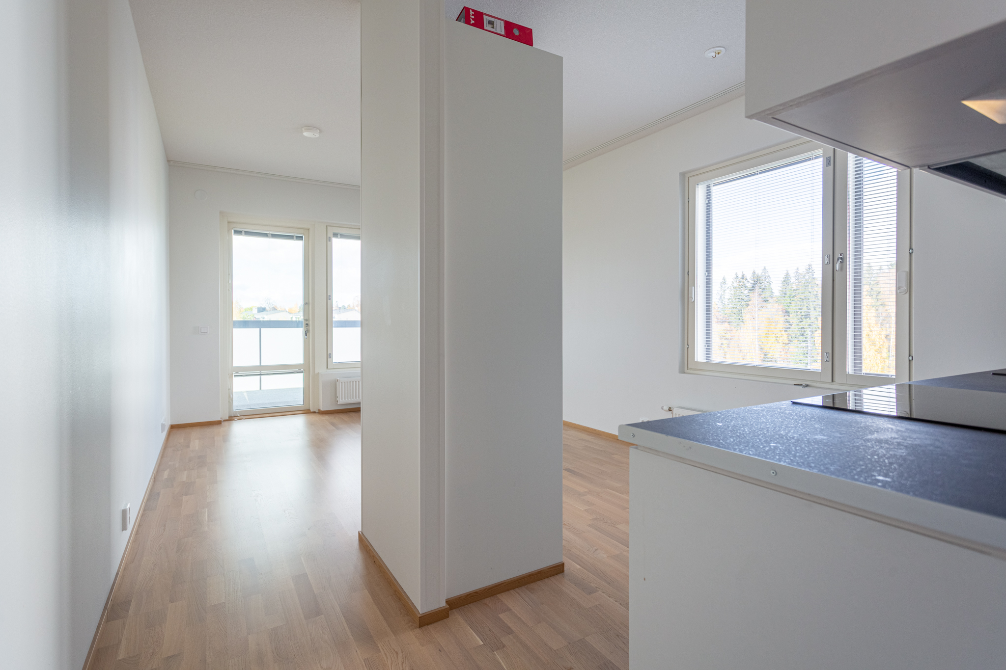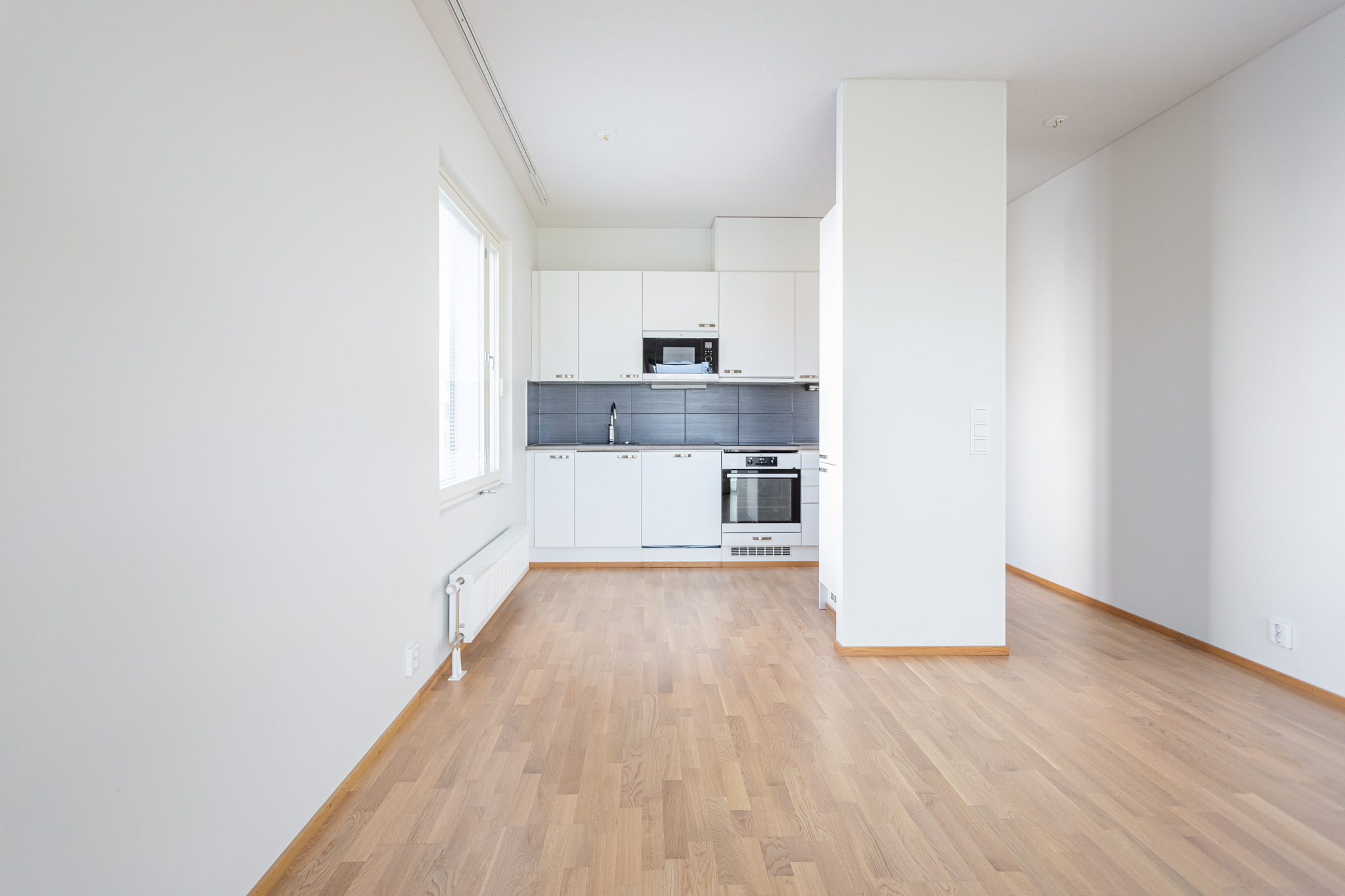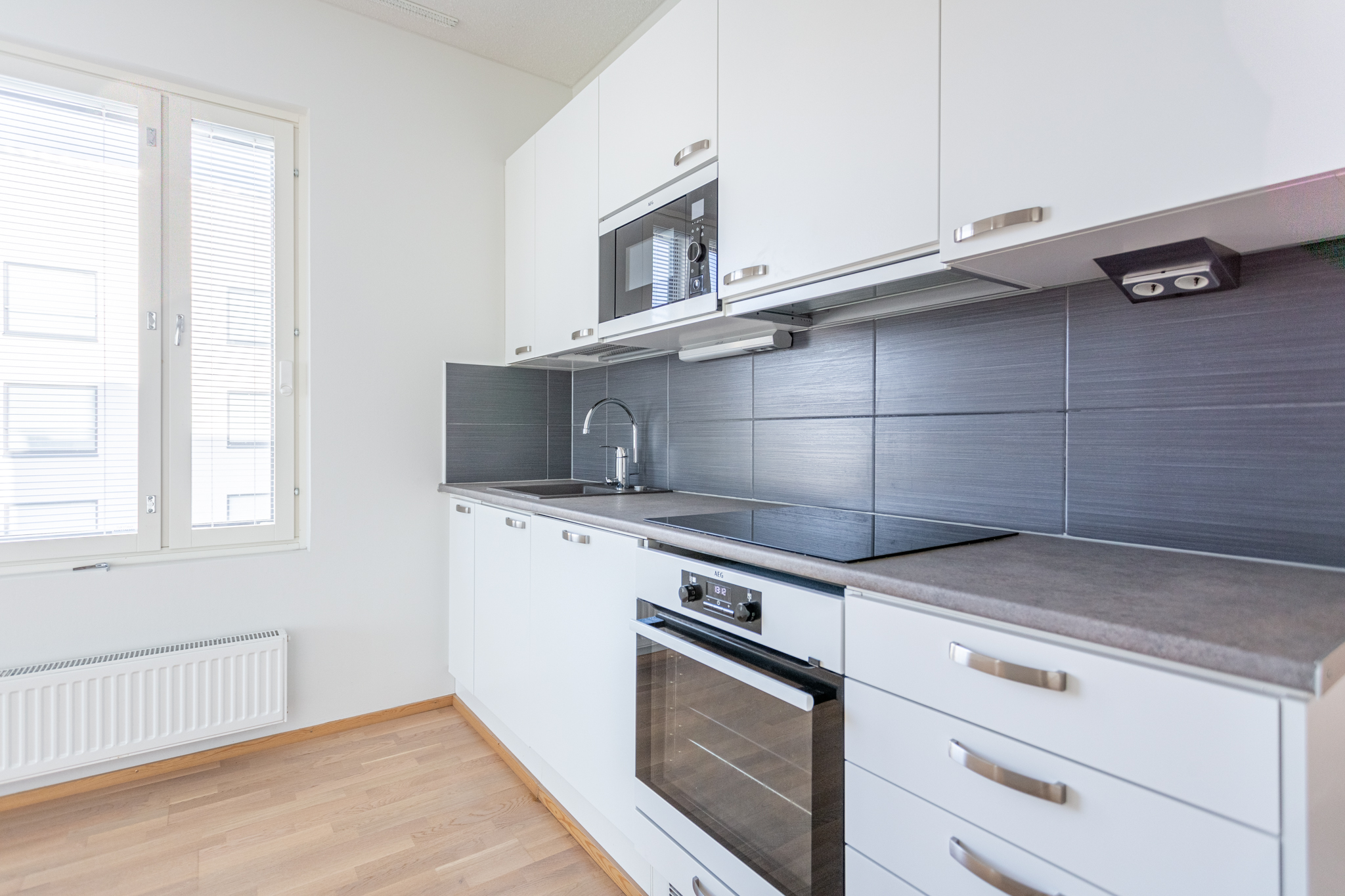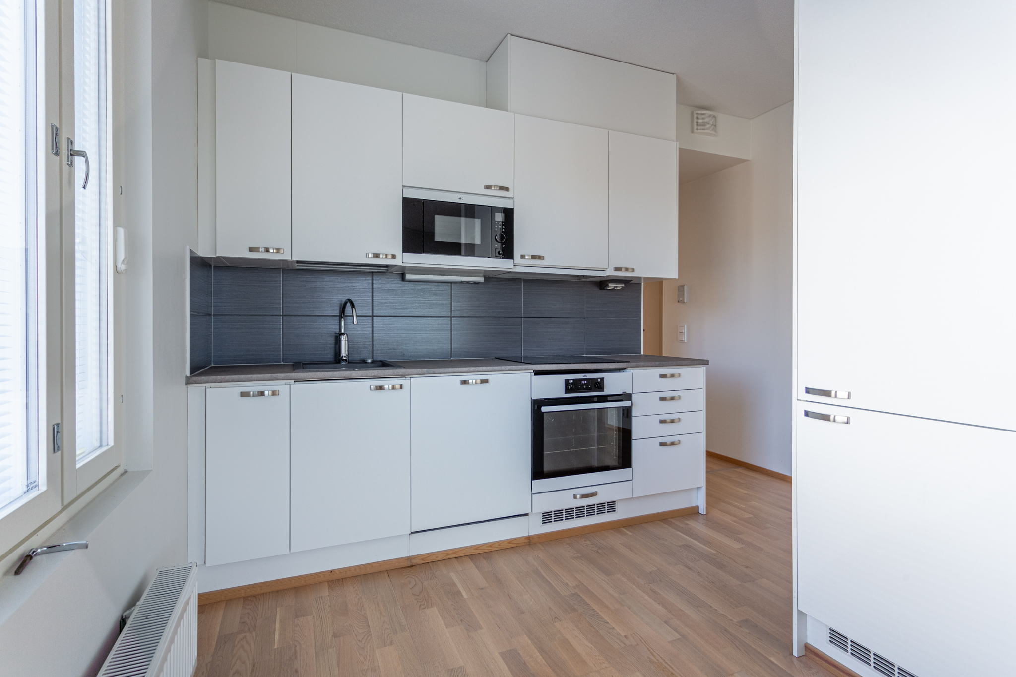 | Keittiön kuvaus | Työtasot (laminaatti), seinät (maali), lattiat (parketti), jääkaappipakastin (integroitu), mikroaaltouuni (integroitu), astianpesukone (integroitu), erillisuuni ja induktioliesitaso |