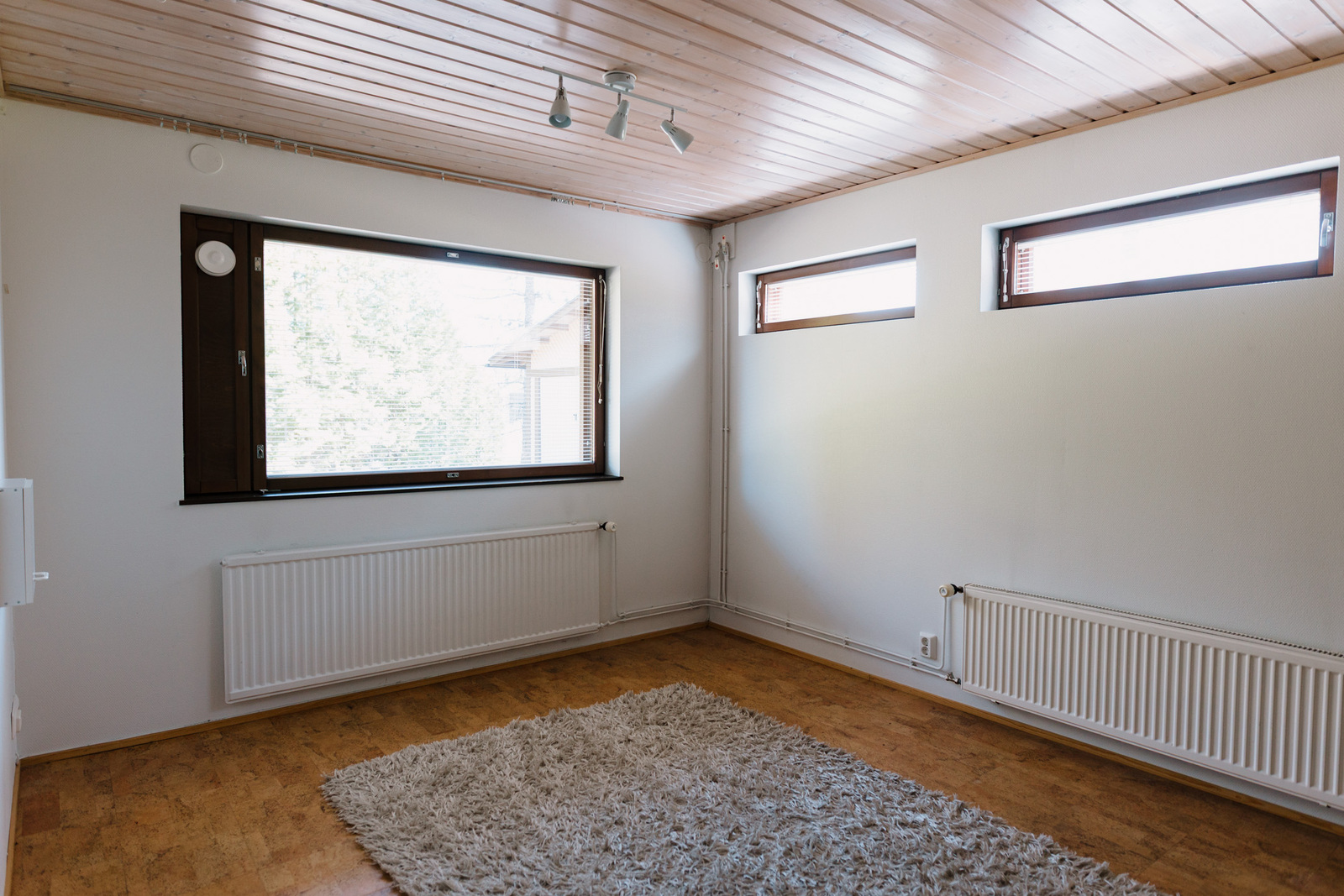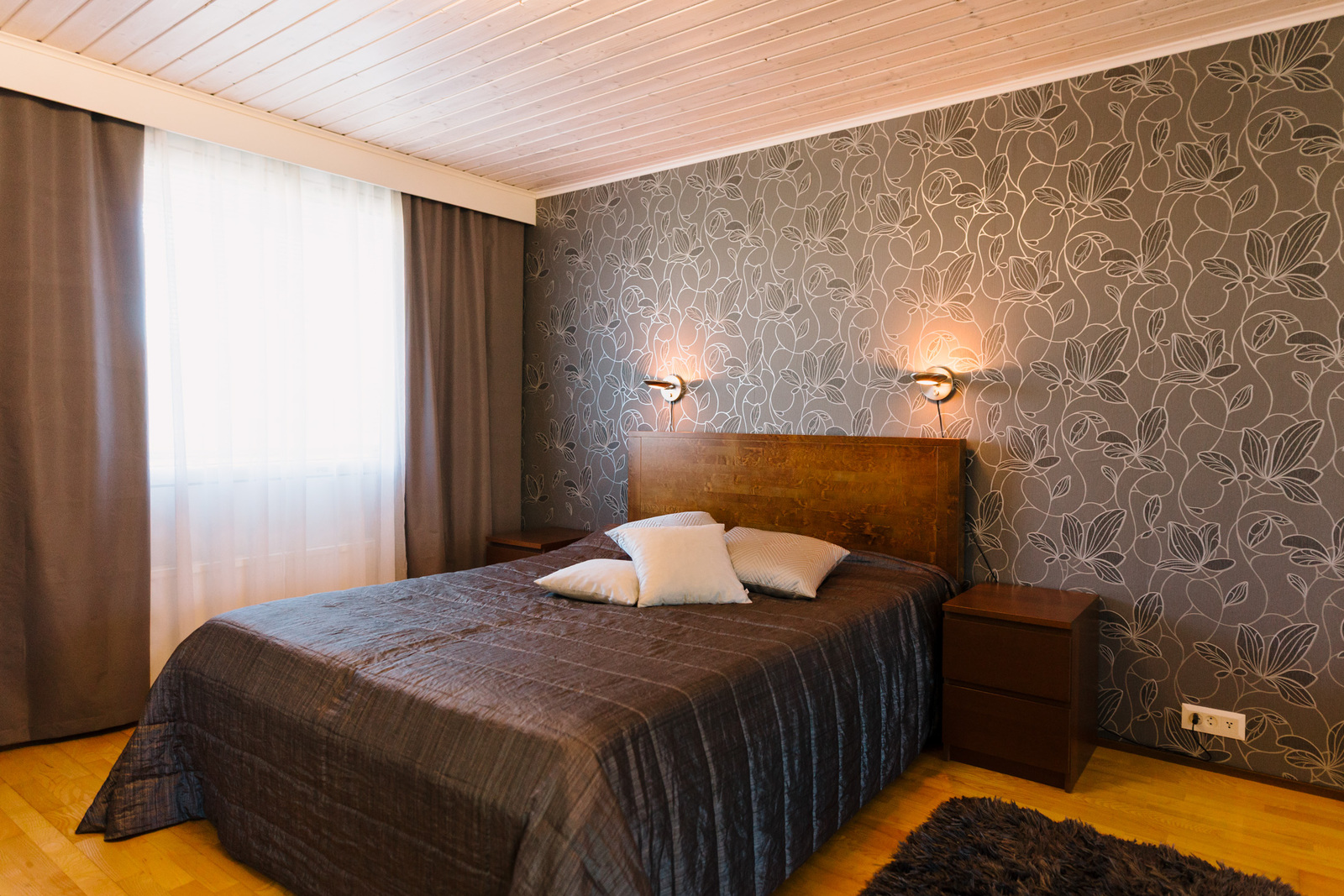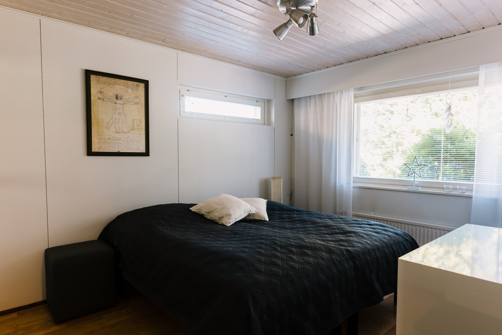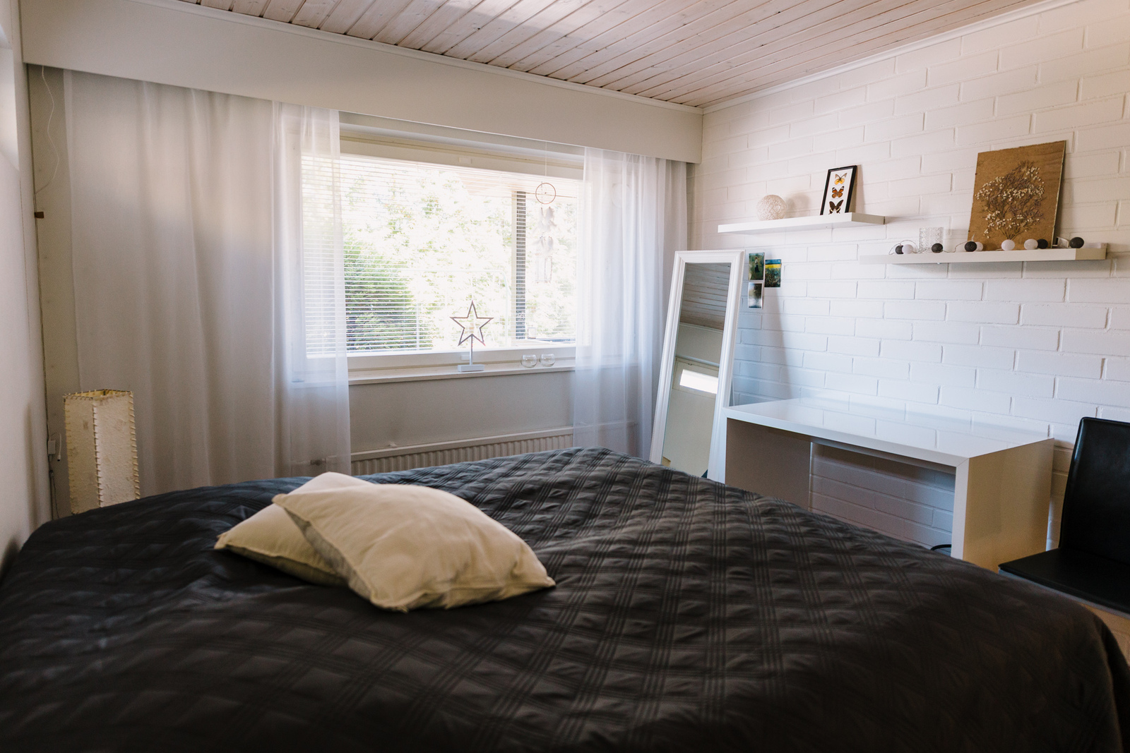 | Makuuhuoneen kuvaus | Lukumäärä: 5, seinät (maali ja tapetti), lattiat (parketti ja korkki) |