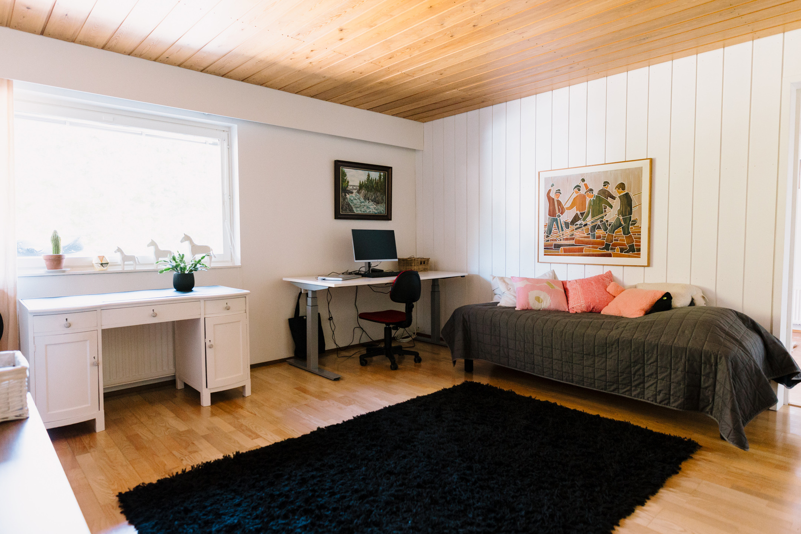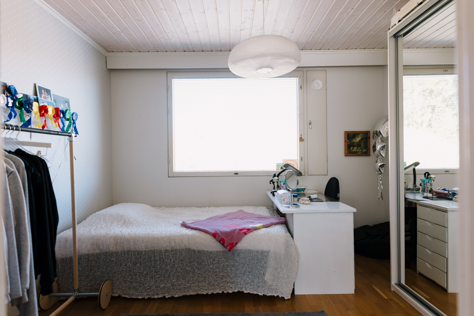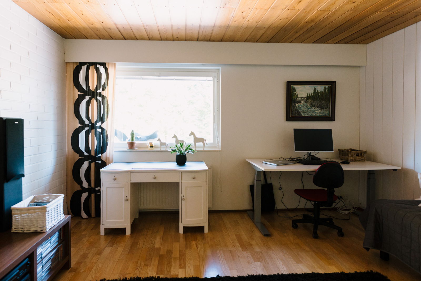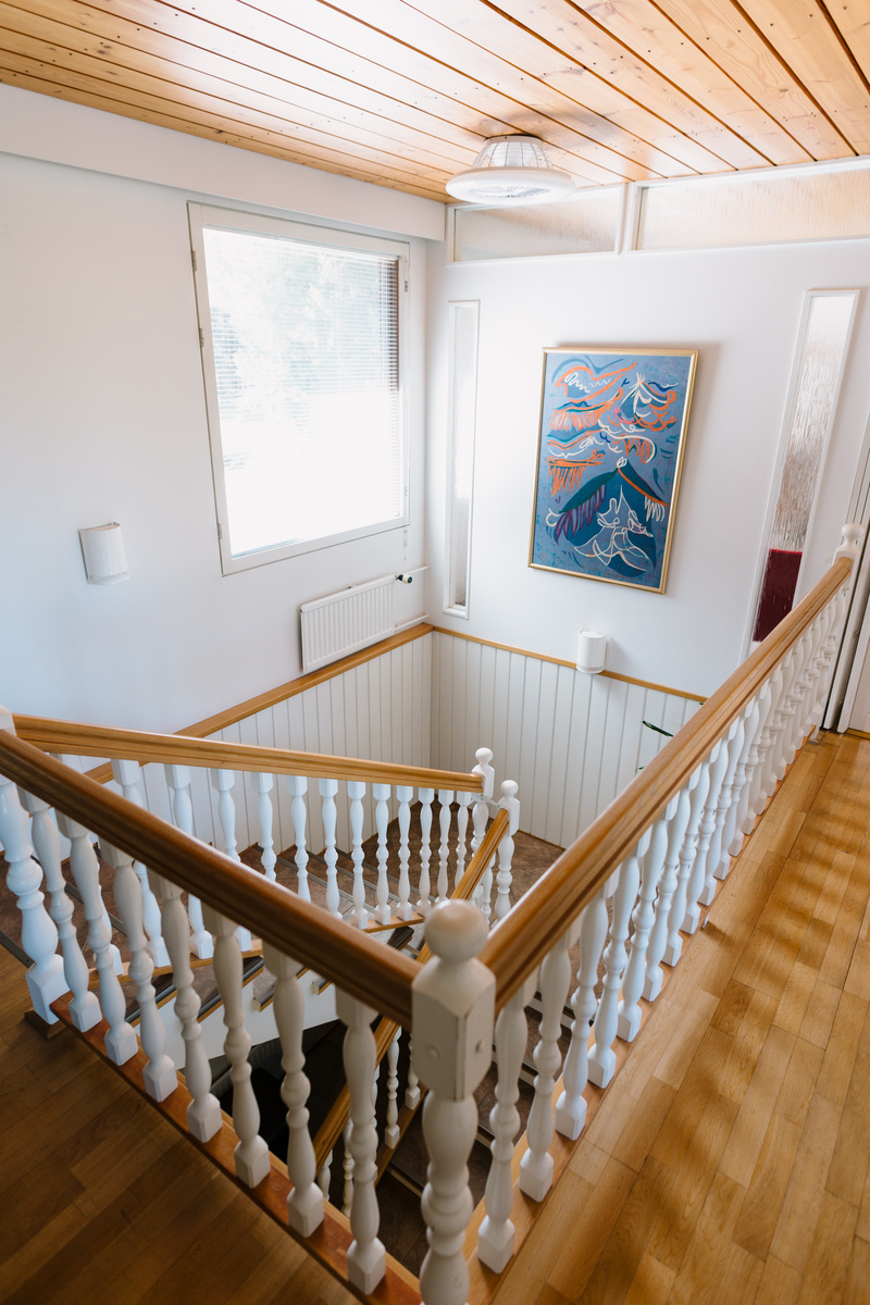 | Makuuhuoneen kuvaus | Lukumäärä: 5, seinät (maali ja tapetti), lattiat (parketti ja korkki) |