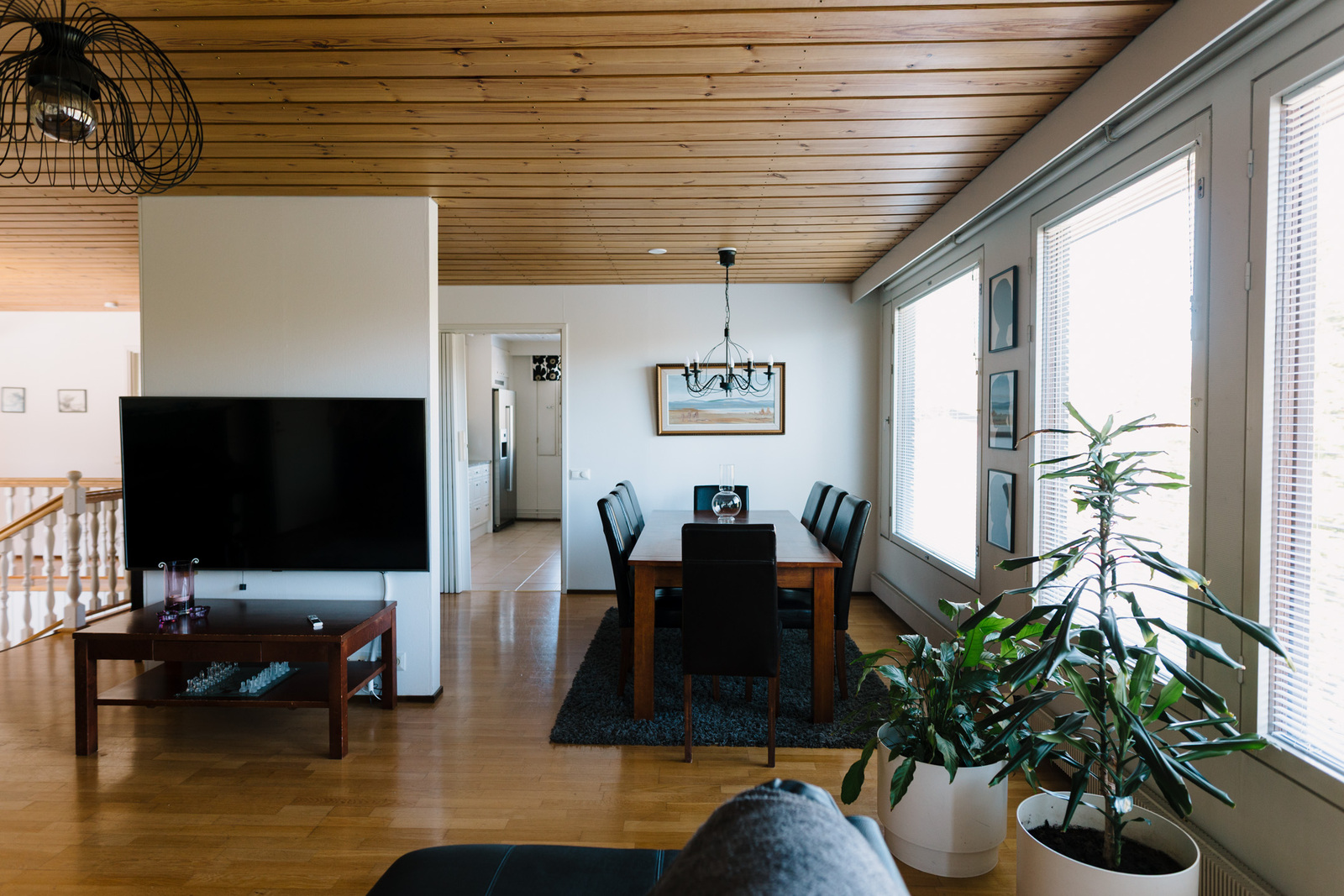 | Olohuoneen kuvaus | Seinät (maali ja tapetti), lattiat (parketti) |