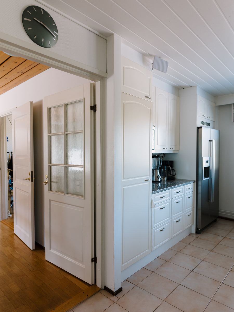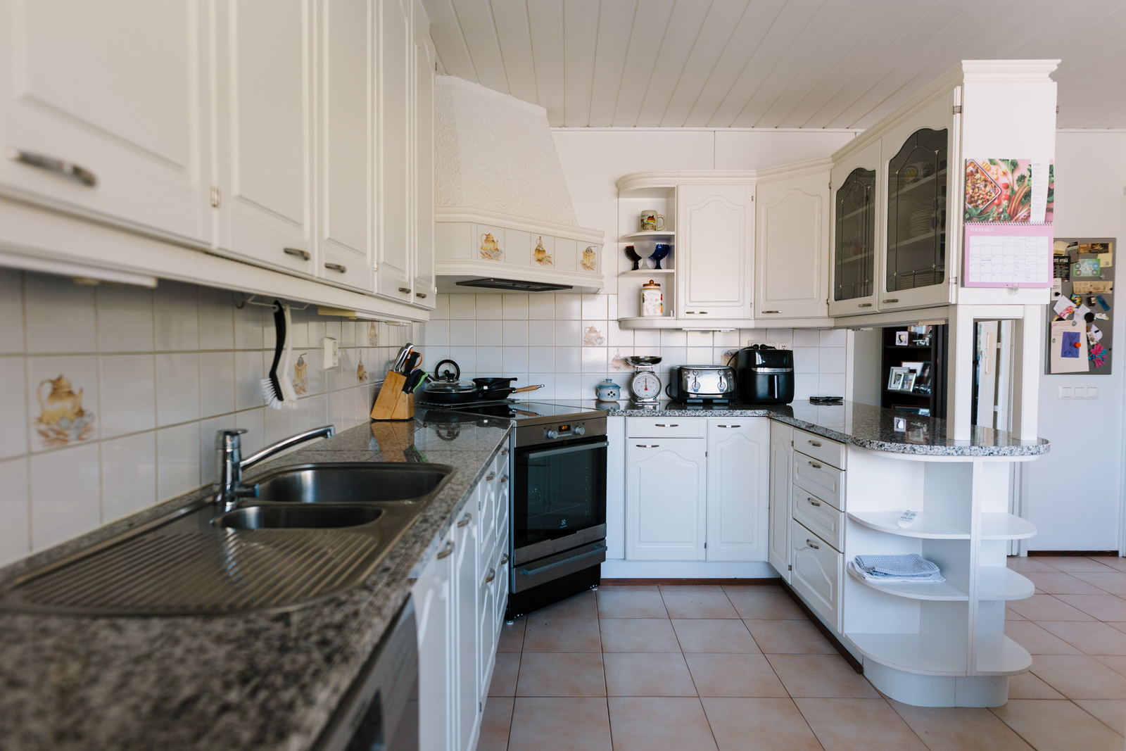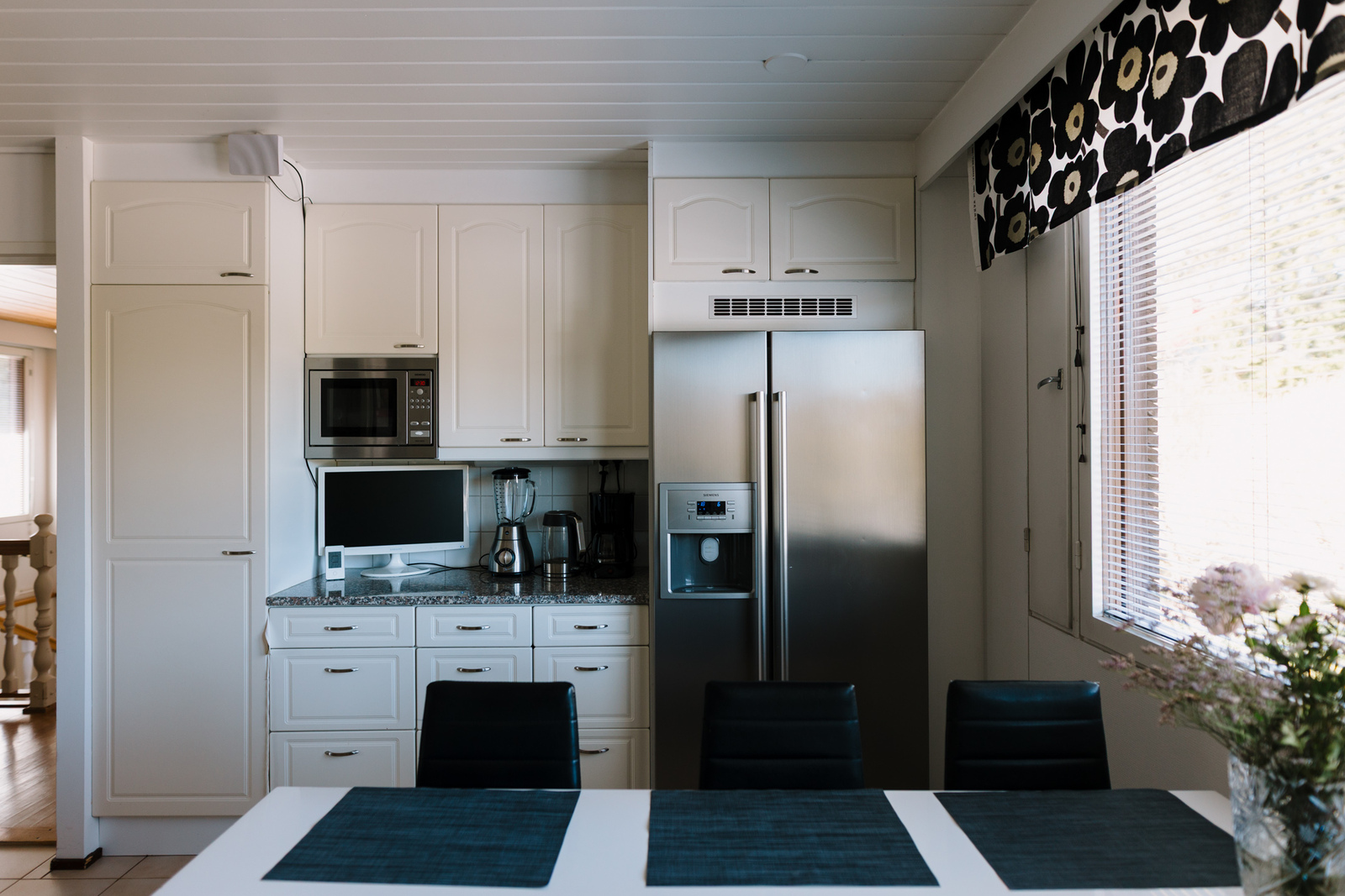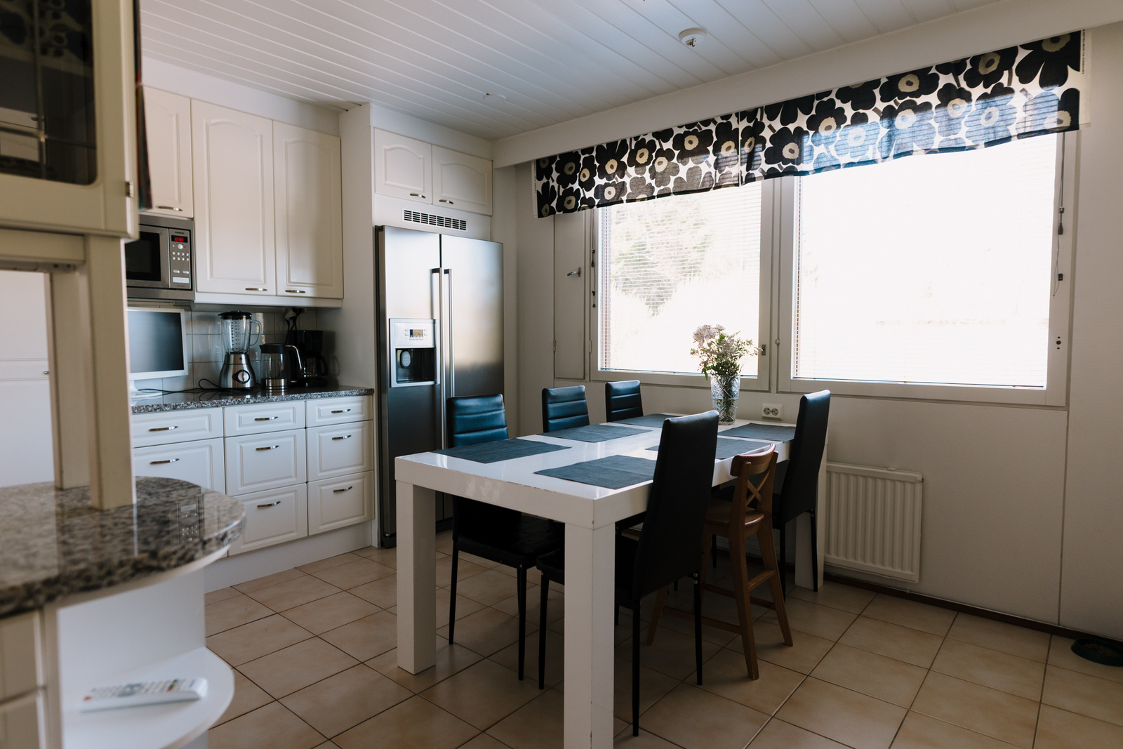 | Keittiön kuvaus | Liesi (Keraaminen liesi), työtasot (kivi), seinät (maali), lattiat (laatta), astianpesukone, jääkaappi, erillinen pakastin ja irralliset kaapistot, kiinteät valaisimet, liesituuletin / hormi |