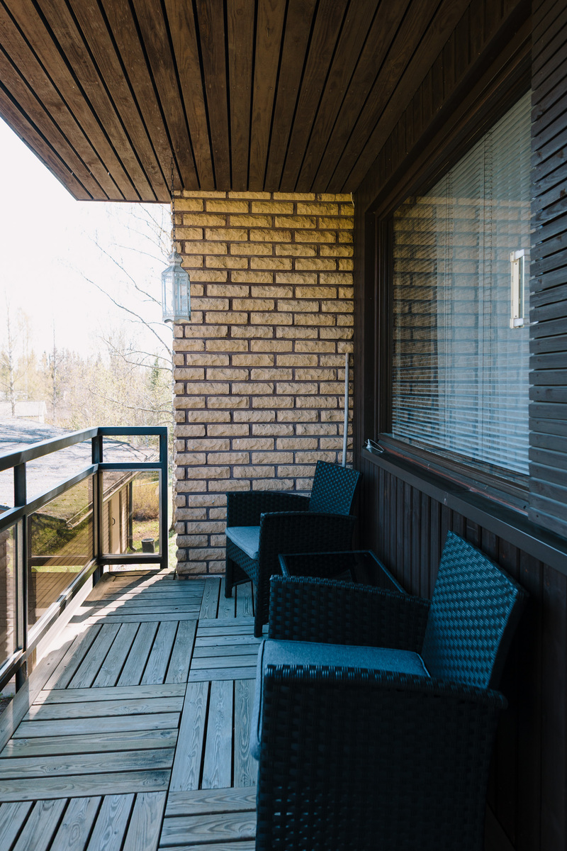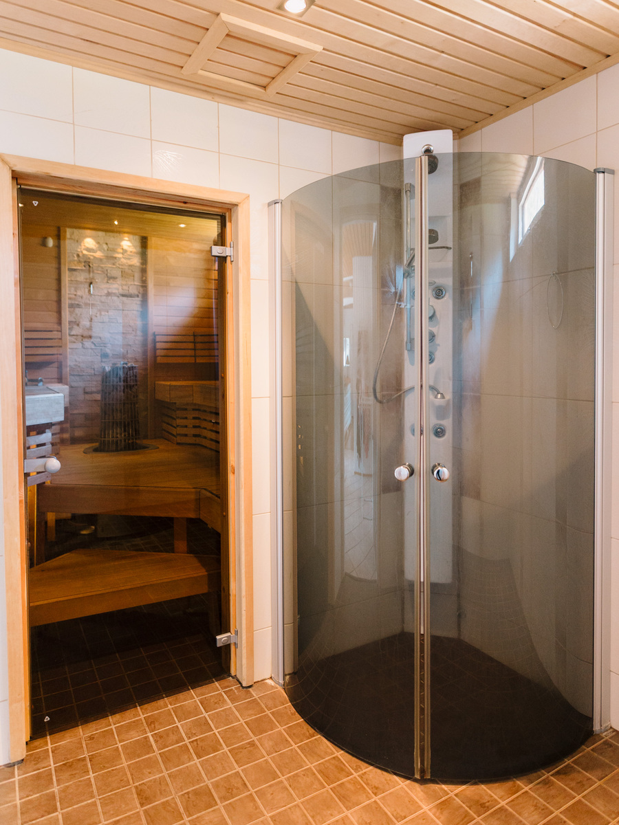 | Saunan kuvaus | Seinät (puu), lattiat (laatta), Sähkökiuas |