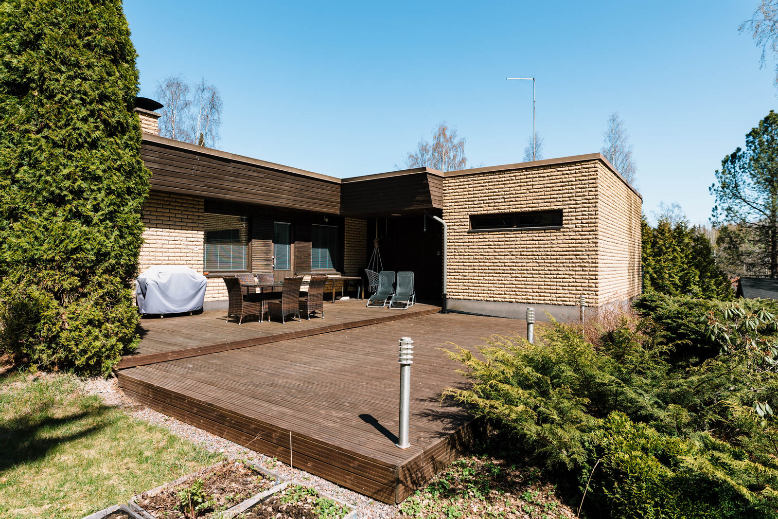 | Tehdyt remontit | Vesikate ja kellarikerroksen ikkunat uusittu. Muut ikkunat ja puu- ja betonipinnat huoltomaalattu 2000. Lämmityskattila ja automatiikka uusittu 2003, Öljysäiliö tarkastettu 2004, Ilmanvaihtokanavat nuohottu 2005, Keittiö ja saunaosasto remontoitu 2009, Sokkeli maalattu 2011, sisäportaat laatoitettu 2011. Autotalli muutettu makuuhuoneeksi ja sen yhteydessä ollut varasto muutettu vaatehuoneeksi ja rakennettu sisääntulokatos 1991. Salaojat uusittu yläpihalle ja kadun viereen, Tulovirtaventtiilit uusittu |