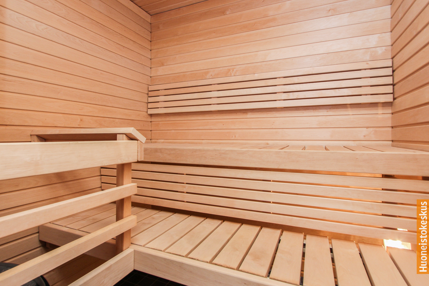| Saunan kuvaus | Seinät (puu), lattiat (laatta), Sähkökiuas, Reilun kokoinen oma sauna. |
