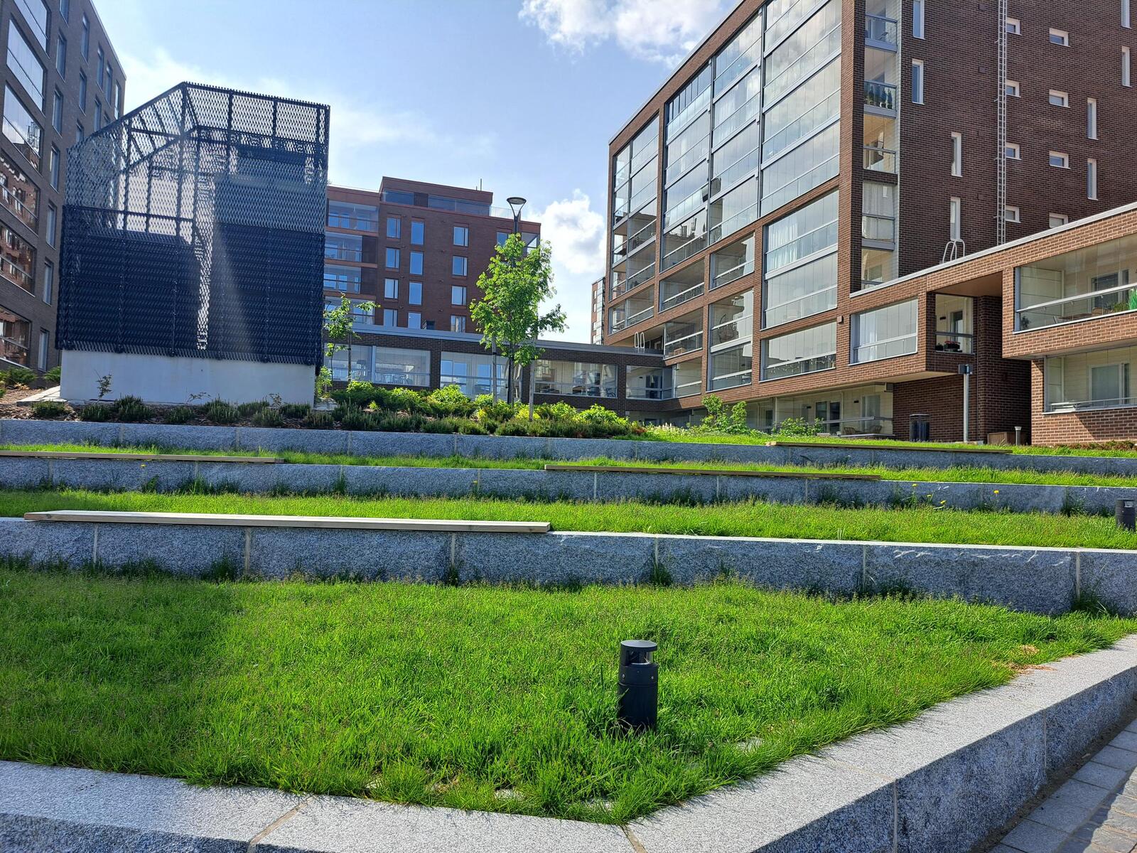 Liikkujalle rannan läheisyys, sen kävelytie ja useat uimapaikat tuovat ison lisän viihtyvyyteen.