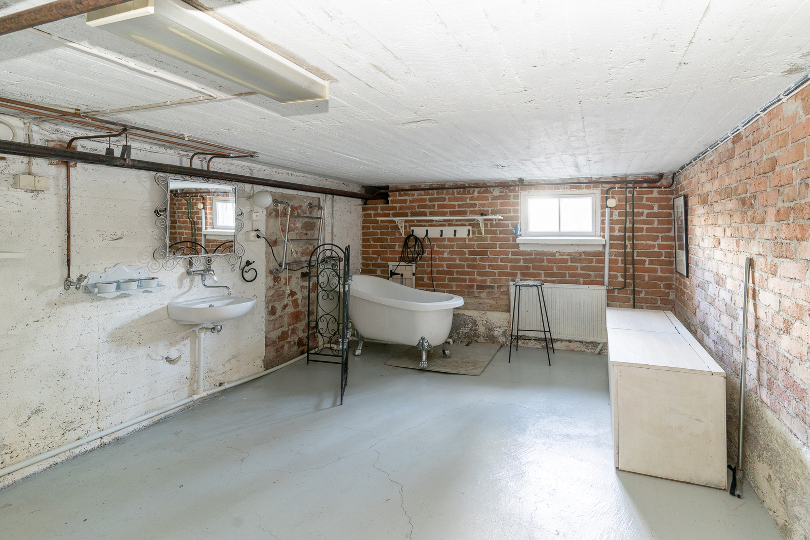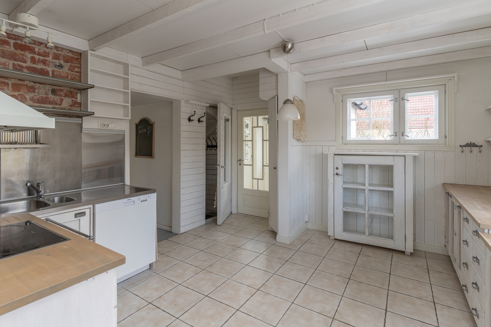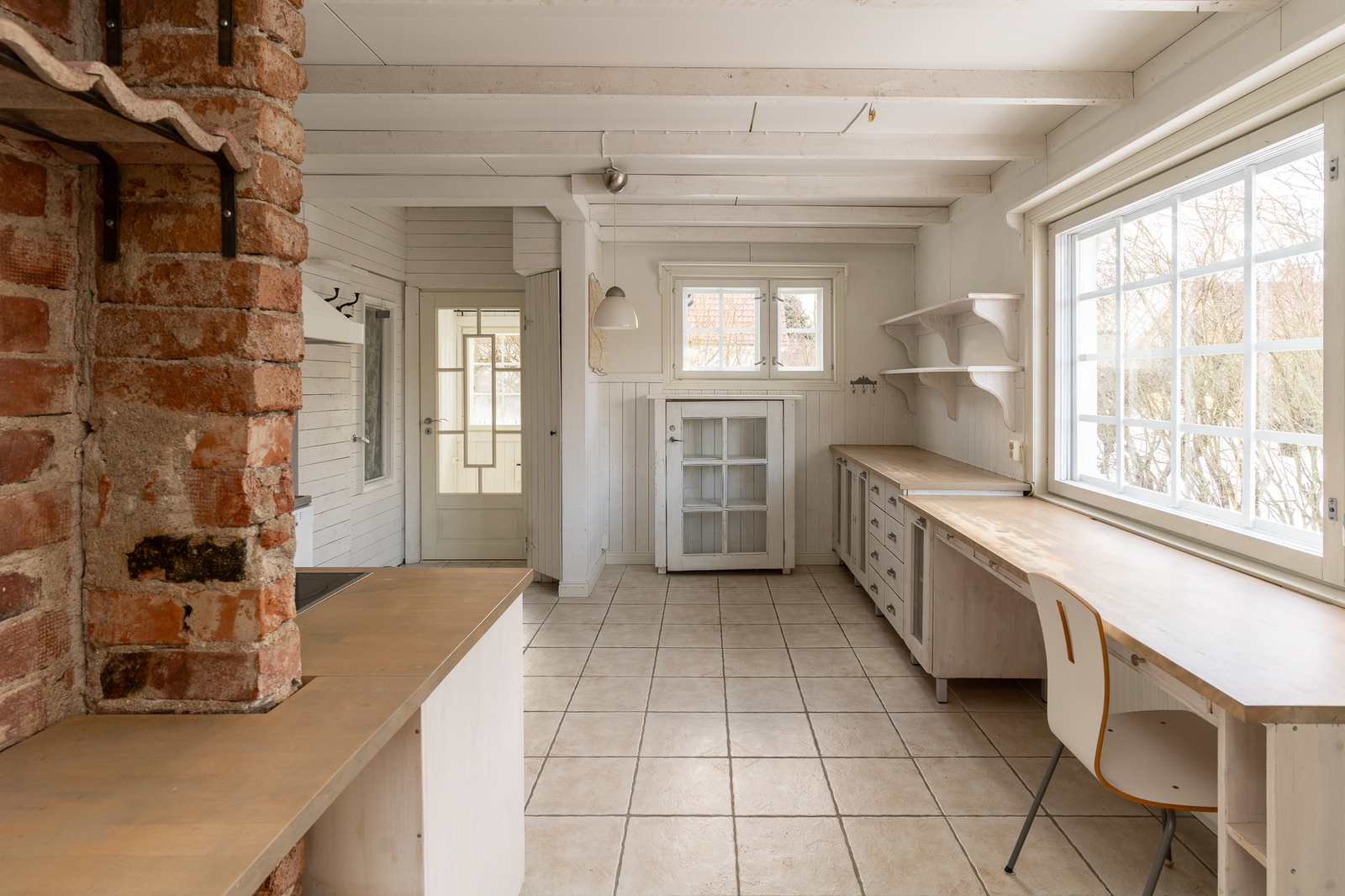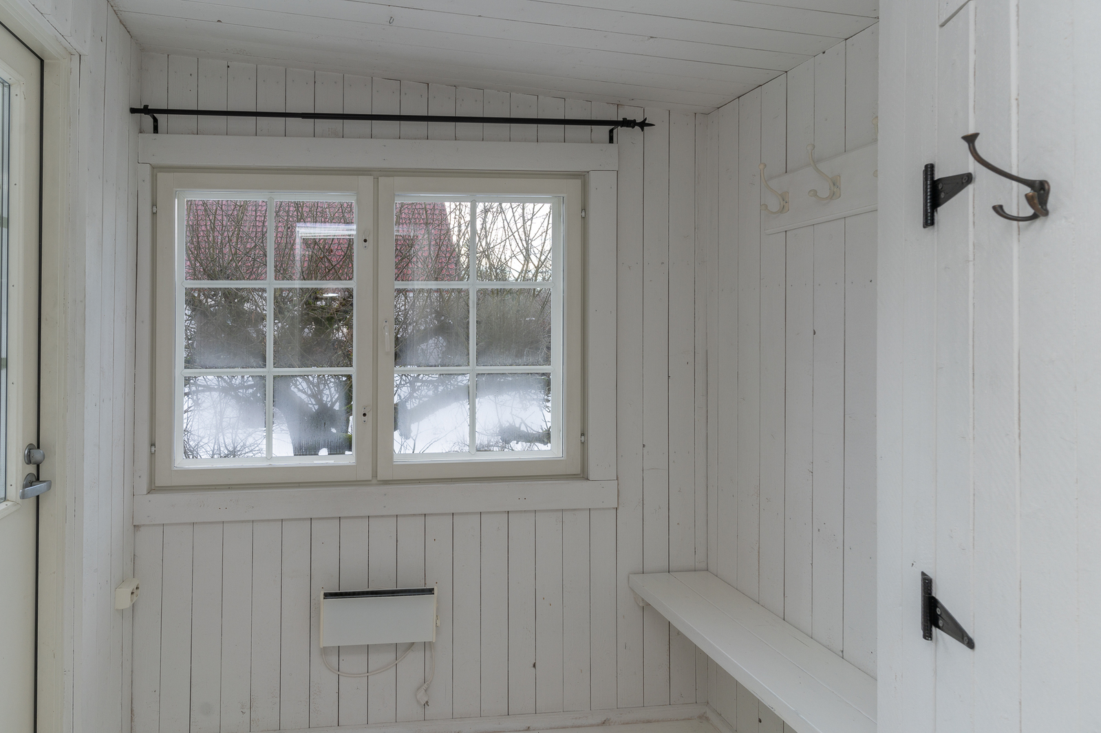 | Muut huoneet ja tilat | Kirjastossa lattia Saima- parkettia, seinät Ensolevy-paneelia. Pieni Jotul-valurautatakka. Eteisessä lattia lautaa, seinät maalatut. Kellaritilassa lattia maalattua betonia, seinät tiiltä ja maalattu. Suihku/Tassuamme. Pk-liitäntä. Nikkariverstas ja työtila. Yläkerran aulassa lattia lautaa, seinät maalatut, ovi katetulle terassille. |