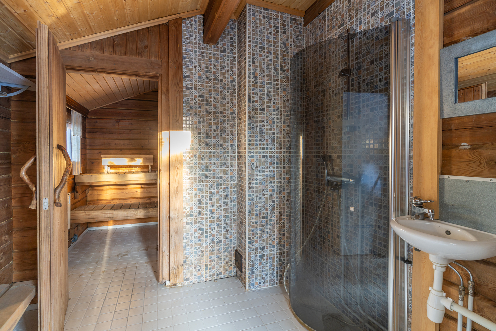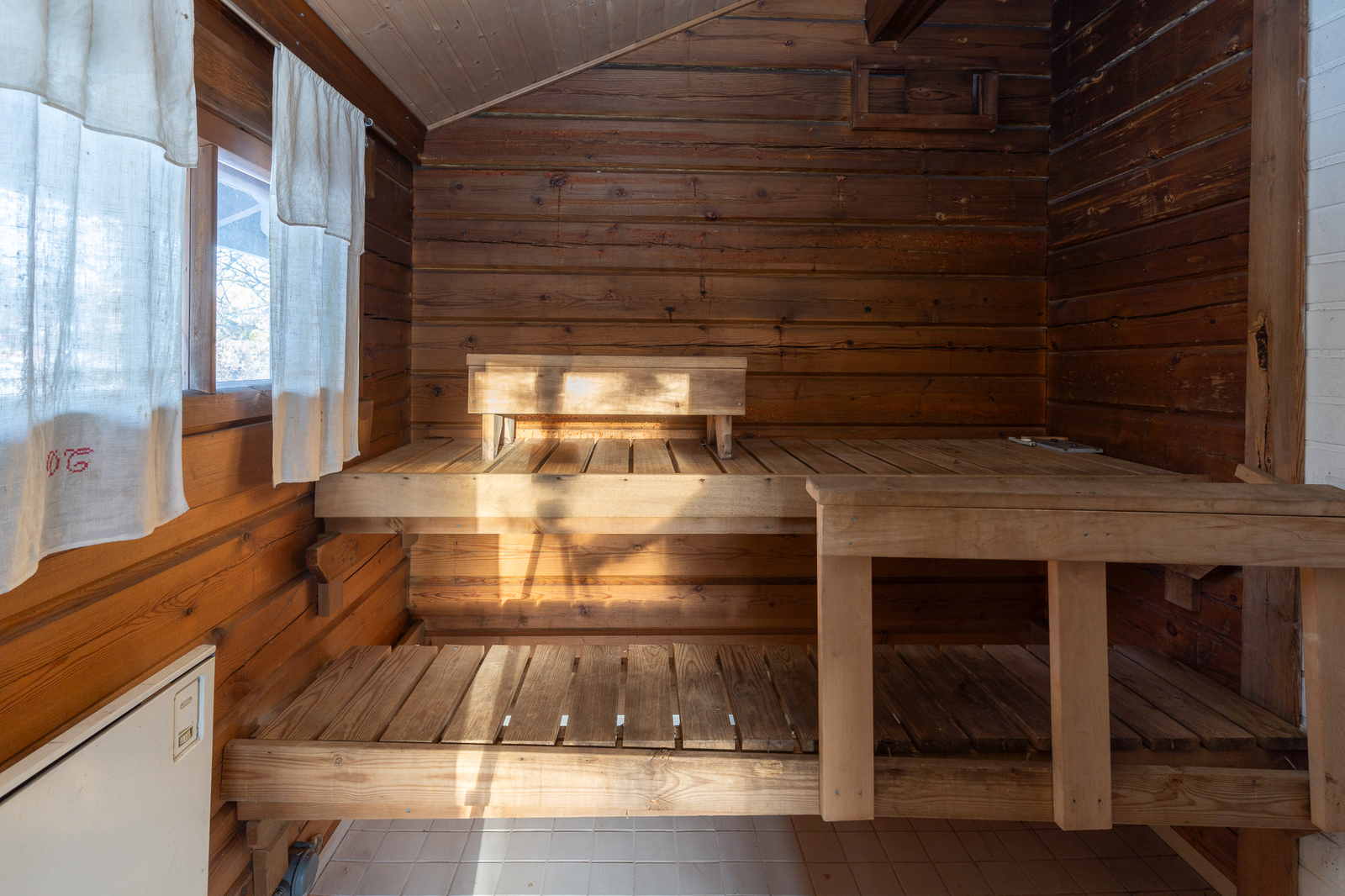| Saunan kuvaus | Pihasaunassa lattia laattaa. Puulämmitteinen kiuas. Pesuhuoneessa suihku. Saunatuvassa hirsiseinät, lattia laminaattia. Jääkaappi. Lämminvesivaraaja. Pesuhuoneessa lattialämmitys. |