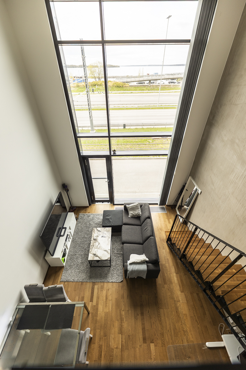 | Olohuoneen kuvaus | Seinät (maali), lattiat (parketti), Olohuoneessa usean metrin huonekorkeus ja ikkunoista hieno näkymä suoraan Näsijärvelle. Olohuoneesta rappuset suurelle parvelle. Parvelta näkymä järvelle. |