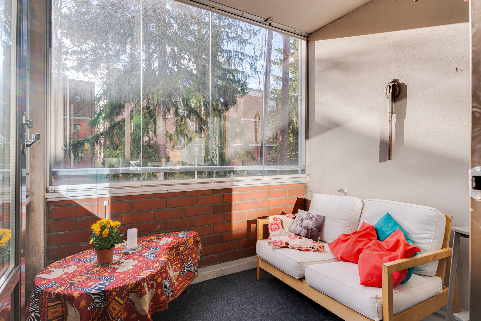 | Muuta taloyhtiöstä | Askarteluhuone, väestönsuoja, mankeli, urheiluvälinevarasto ja huoneistokohtaiset varastot, sauna |