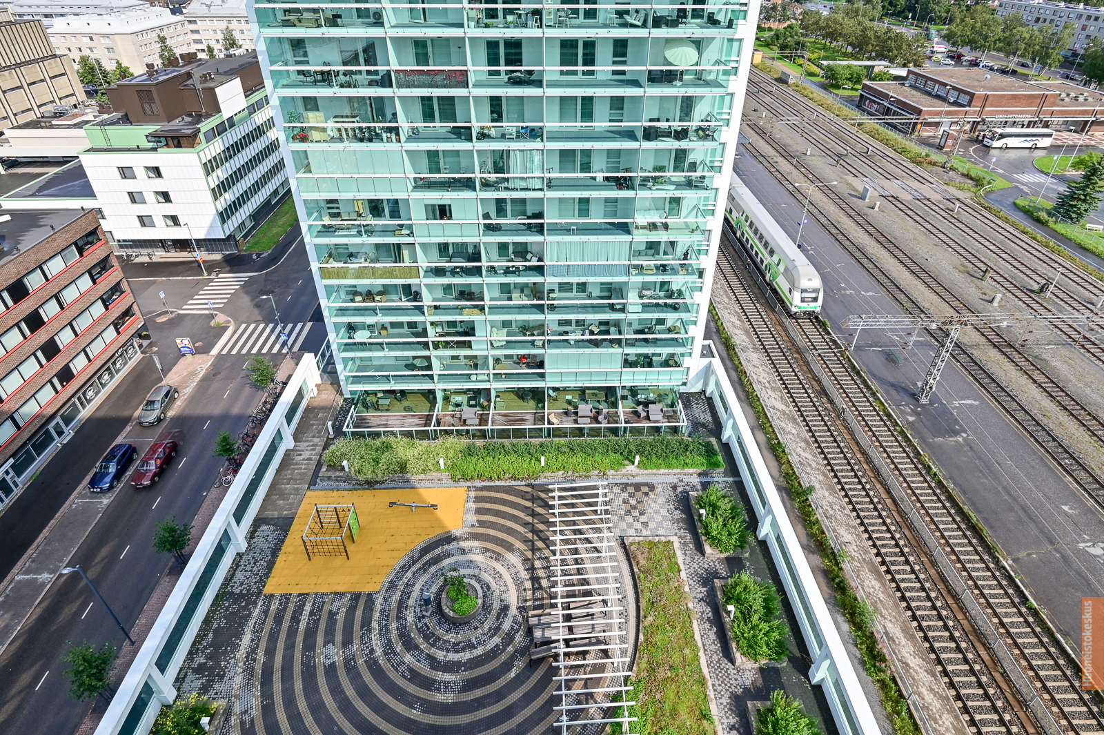 Kaikki keskustan palvelut ihan käden ulottuvilla, Rautatieasema ihan vieressä ja lähikauppaan vain muutama metri.