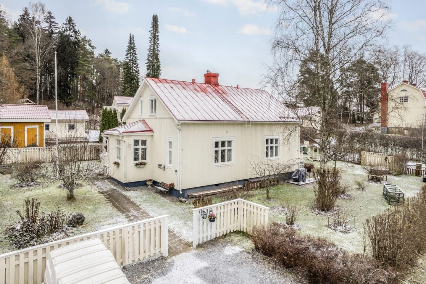 Pihapiiri on huoliteltu ja kutsuva. Se tarjoaa tilaa lasten leikeille, kesäisille puutarhaunelmille tai rauhallisille aamuhetkille omalla terassilla auringon ensisäteitä vasten. Tämä on piha, jossa vuodenaikojen vaihtelun voi todella tuntea.