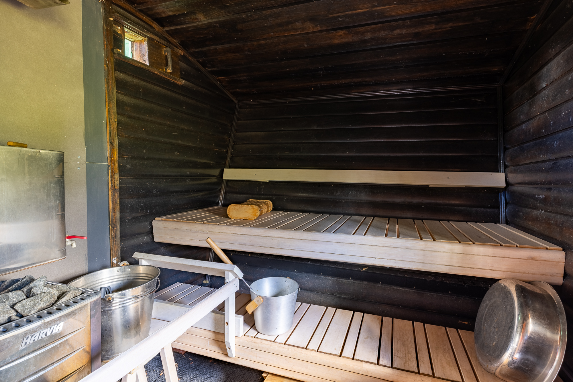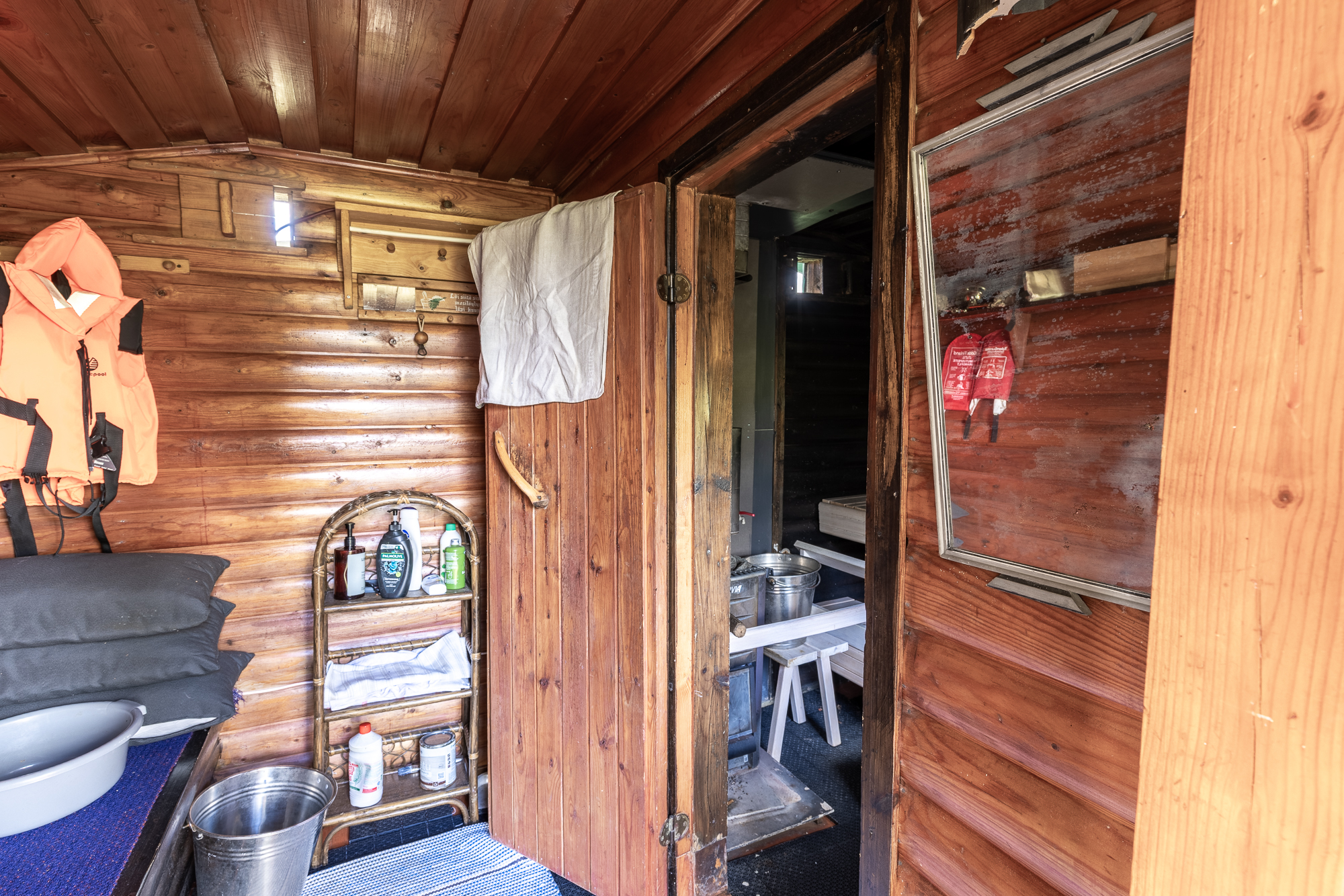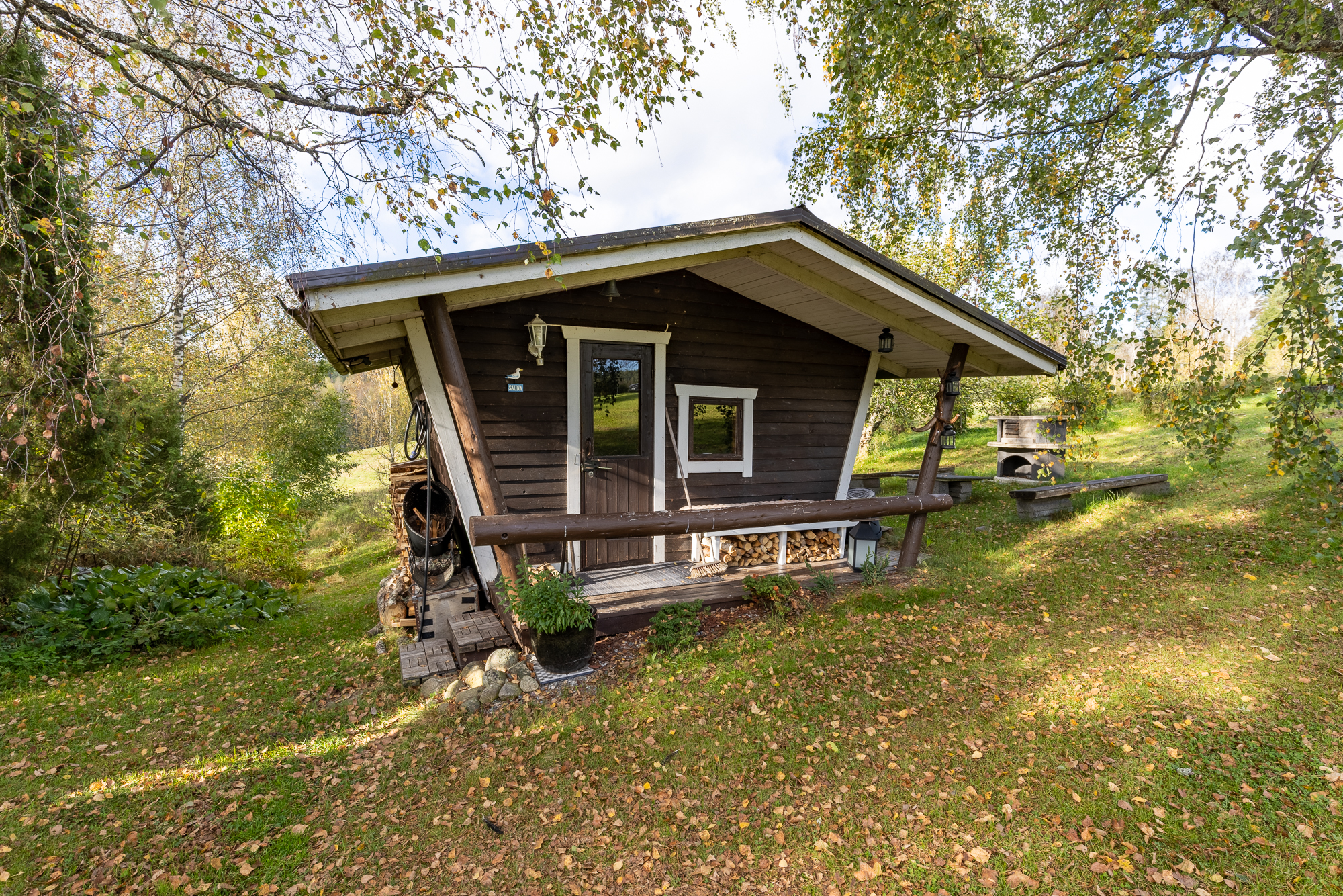 saunarakennus, huvimaja, puuliiteri, vaja sekä remontin läpikäynyt