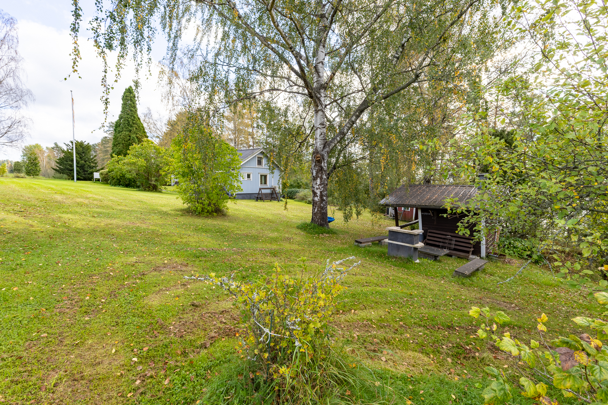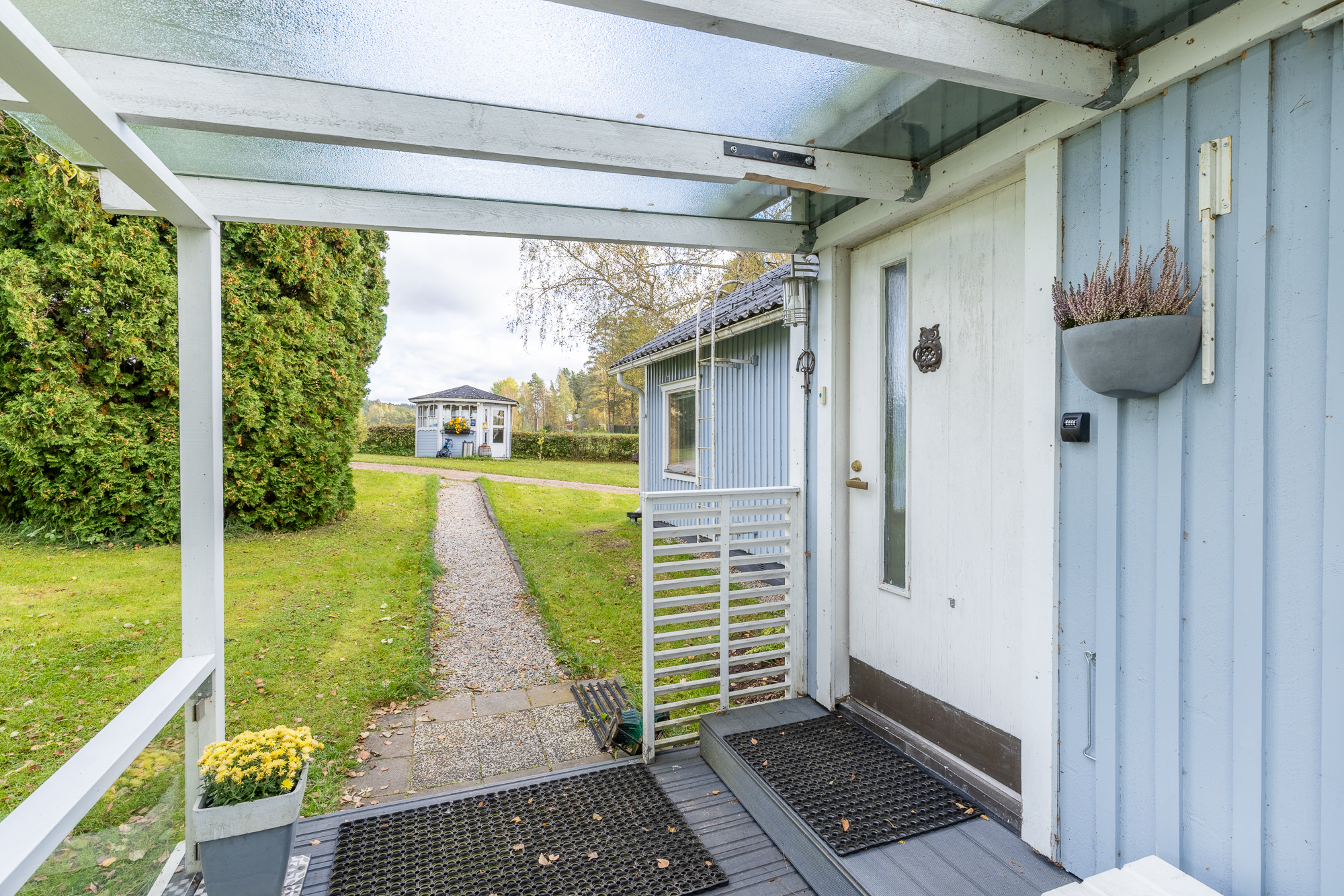 Pihapiiristä löytyy erillinen saunarakennus, huvimaja, puuliiteri, vaja sekä remontin läpikäynyt