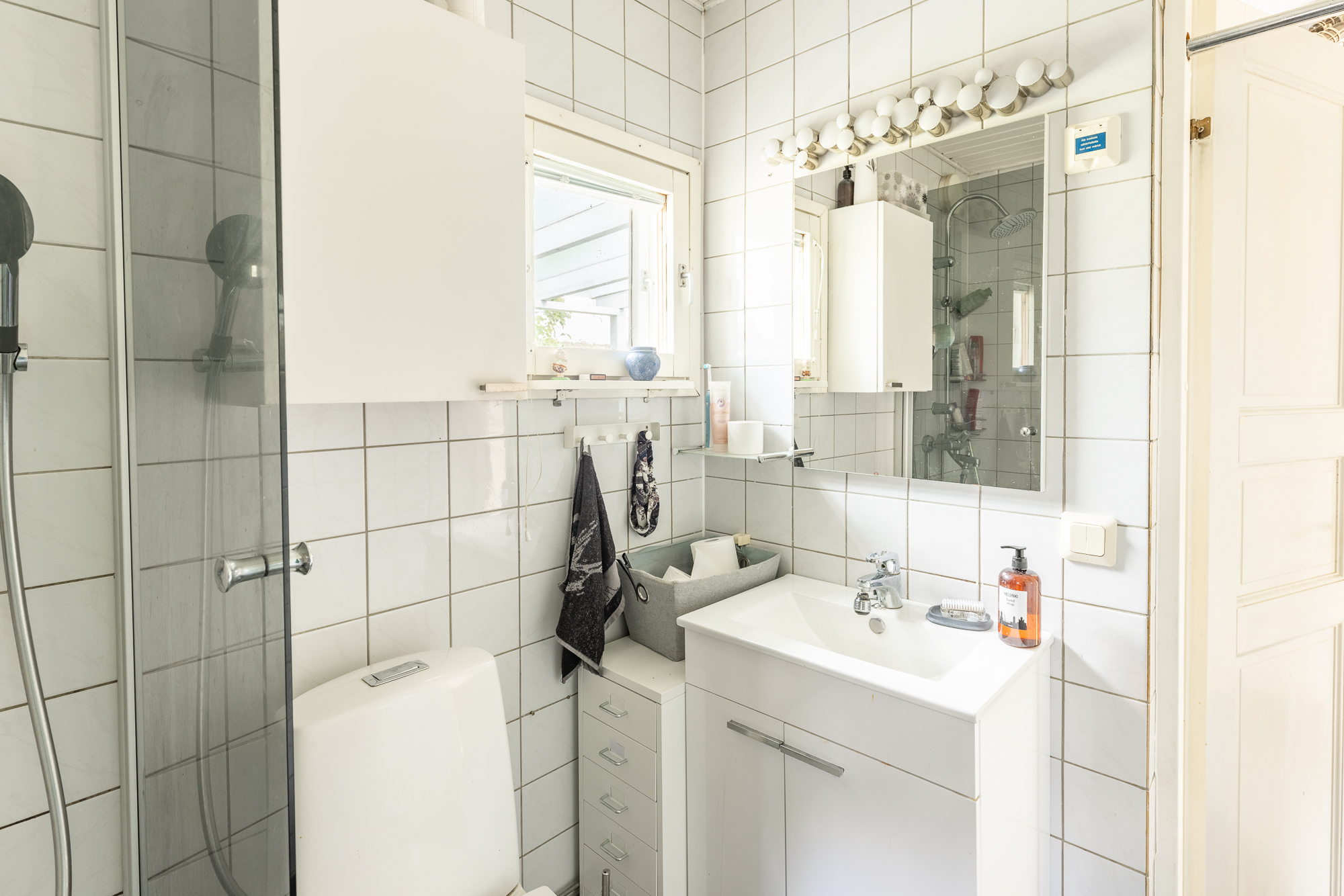 WC-istuin ja suihku, seinät (kaakeli ja maali), lattiat (laatta) |