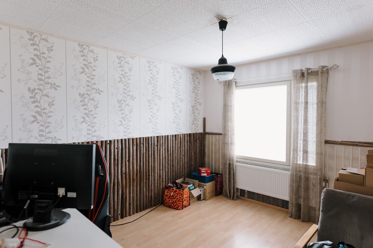 Seinät (tapetti), lattiat (laminaatti) |