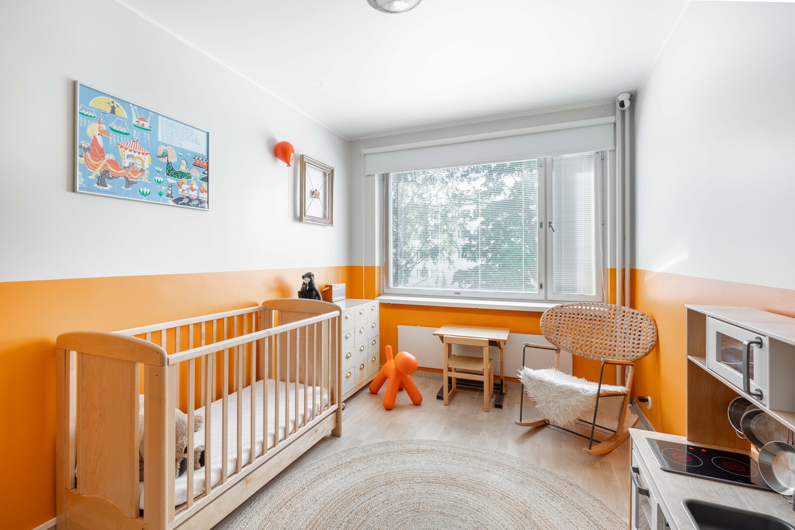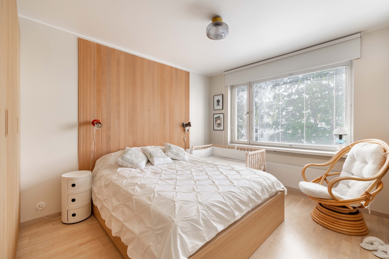 | Muuta kauppaan kuuluvaa | Makuuhuoneen sormipaneeliseinä jää. Lisätietoja sisältyvistä varusteista: kaapistot, naulakko, sälekaihtimet/rullaverhot. |