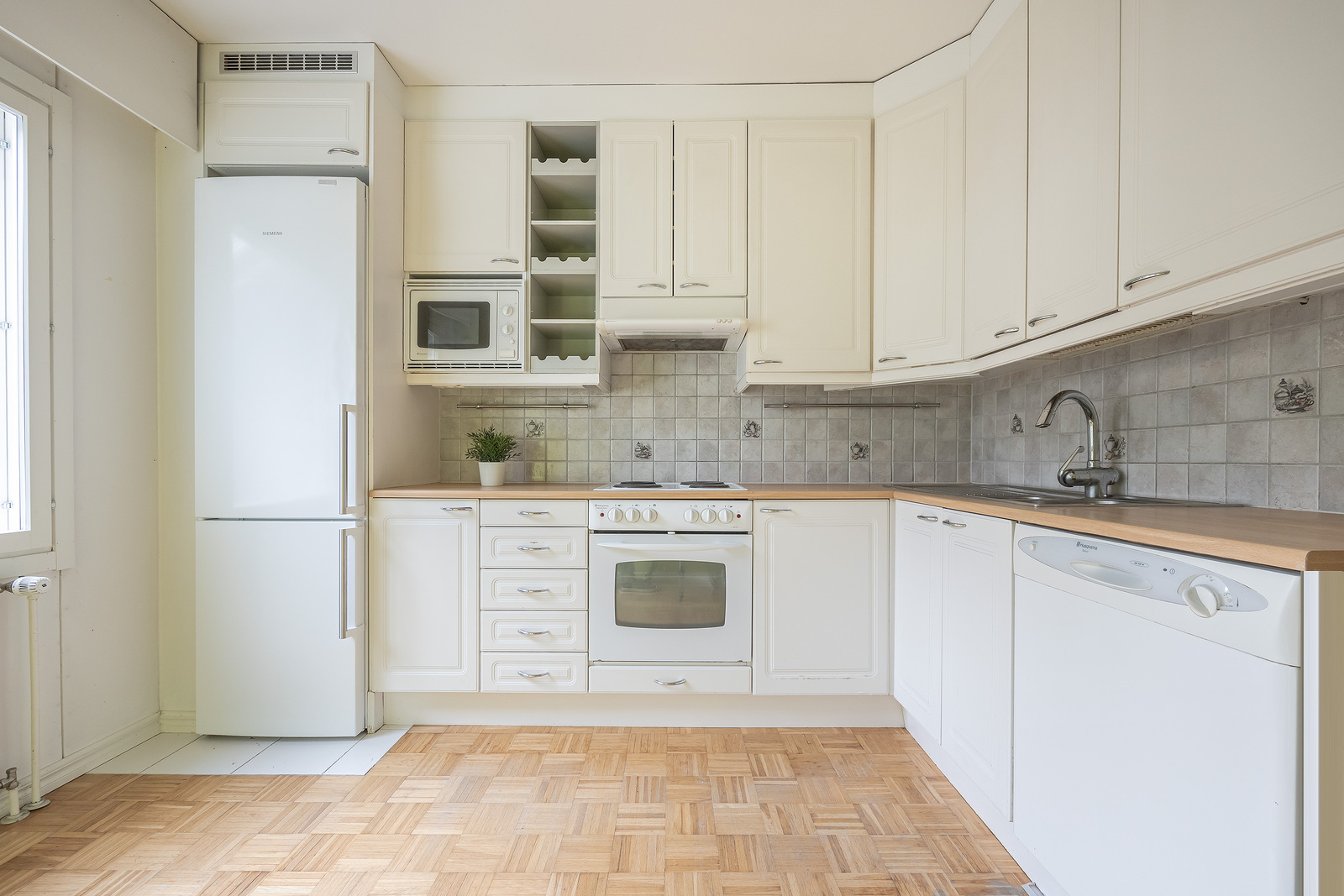 Mosaiikkiparketti: keittiö, olohuone