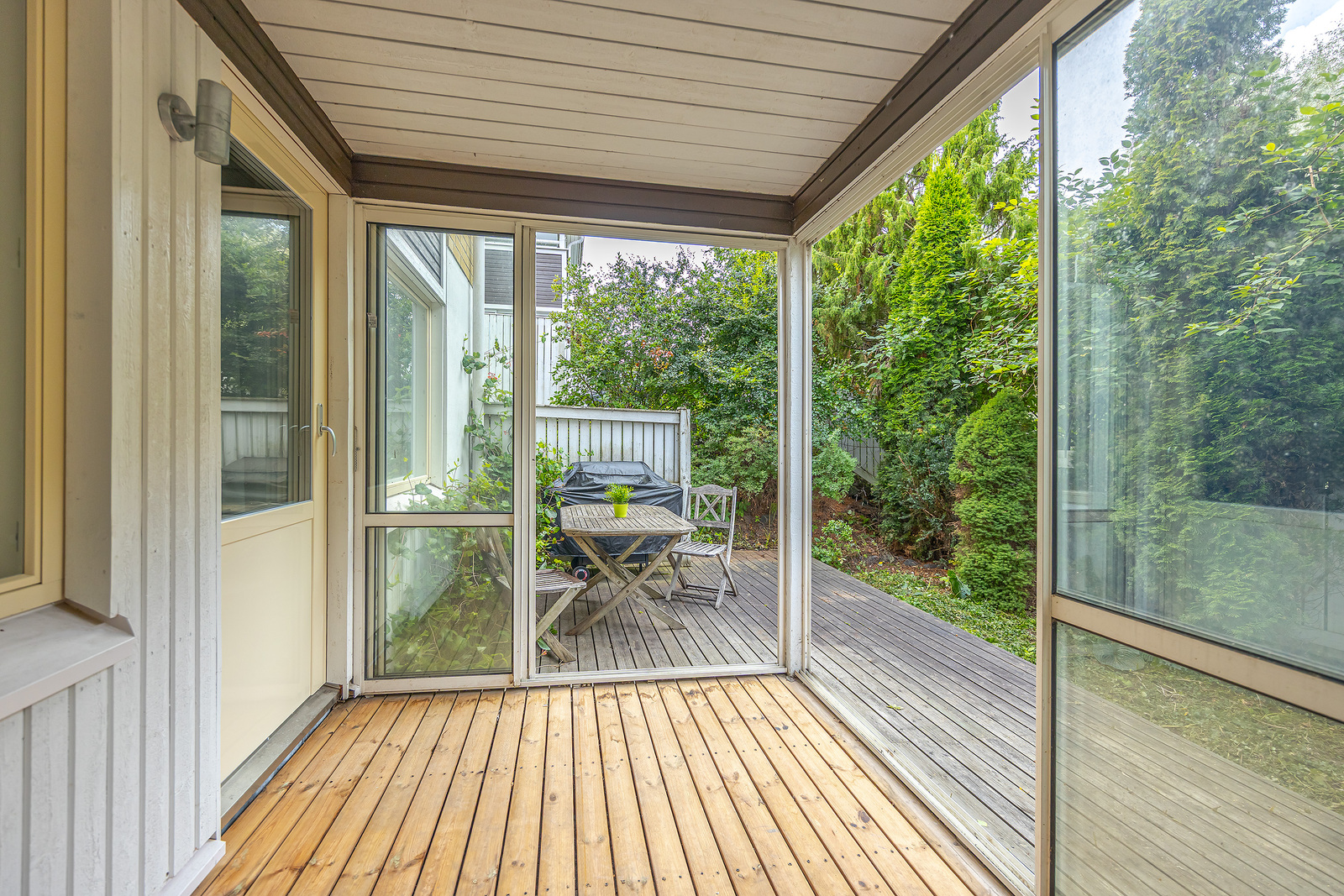 Pihakalusteet ja grilli, alakerran kattovalaisimet. |