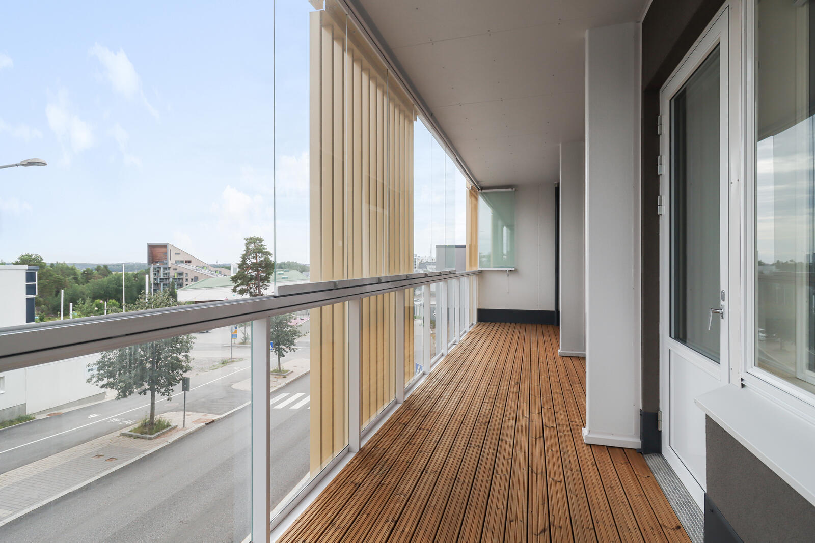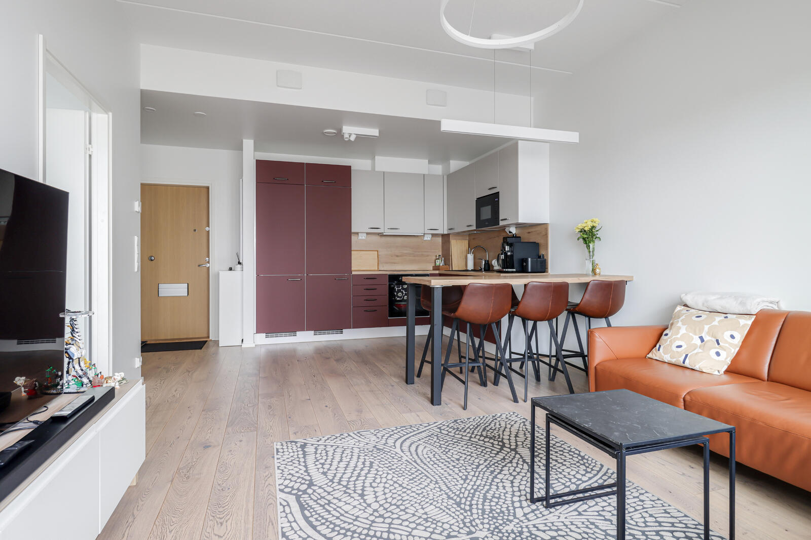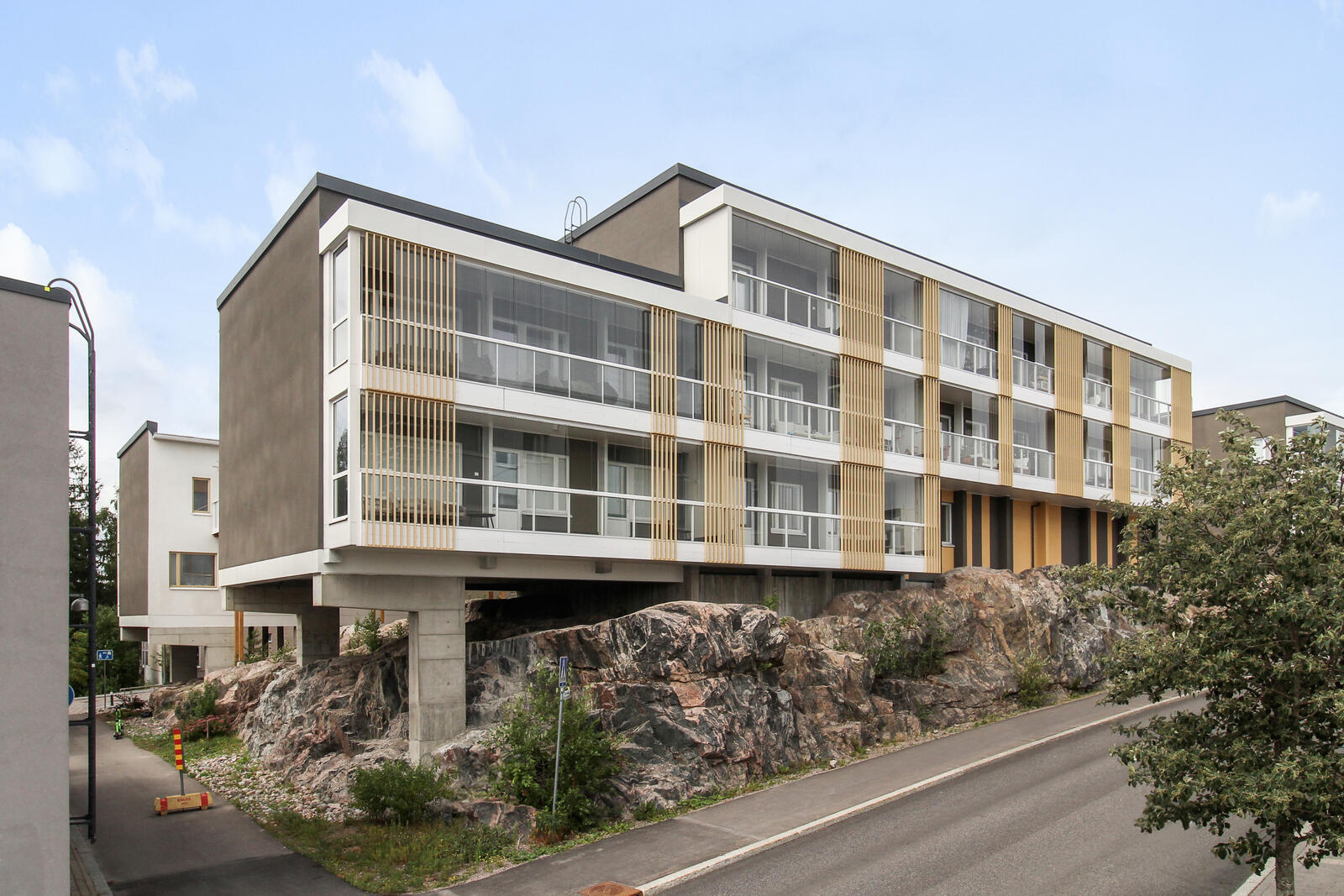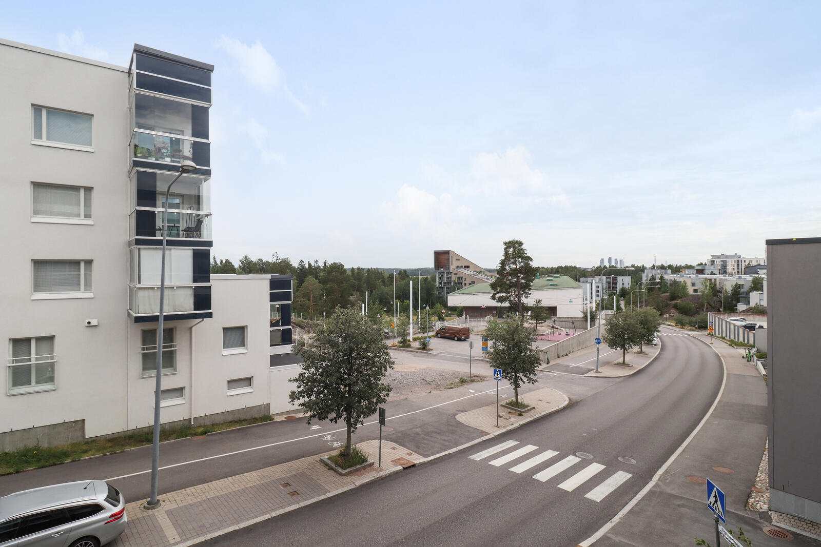 Tämä erittäin siististi asuttu kolmio sijaitsee vasta 2022 valmistuneessa talossa, käytännöllisesti katsoen aivan Viikinmäen kallion laella, ja se tarjoaa sinulle modernin ja värimaailmaltaan tyylikkään pohjan sisustaa siitä mieleisesi. Olohuoneen ja keittiön avoin yhdistelmä jatkuu tilavalle, koko asunnon, peräti kolmen huoneen levyiselle, lasitetulle, idän ja etelän väliin, kaakkoon avautuvalle parvekkeelle. Isomman makuuhuoneen vieressä on monen kaipaama arjen pelastus, eli vaatehuone ja tammiparketit tuovat laatua! Asunnosta saa vaikutelman, että neliöitä olisi enemmänkin; reilu huonekorkeus, eteisen kaapiston peililiukuovet ja tilava kylpyhuone, tuovat näin tilan tuntua, joka jatkuu luontevasti läpi asunnon. Taloissa on mukavuuslämmitys, rumia lämpöpattereita ei ole ollenkaan, lämpö on tasaista, myös kesällä, jolloin asunto pysyy sopivana, eikä kuumene liikaa.