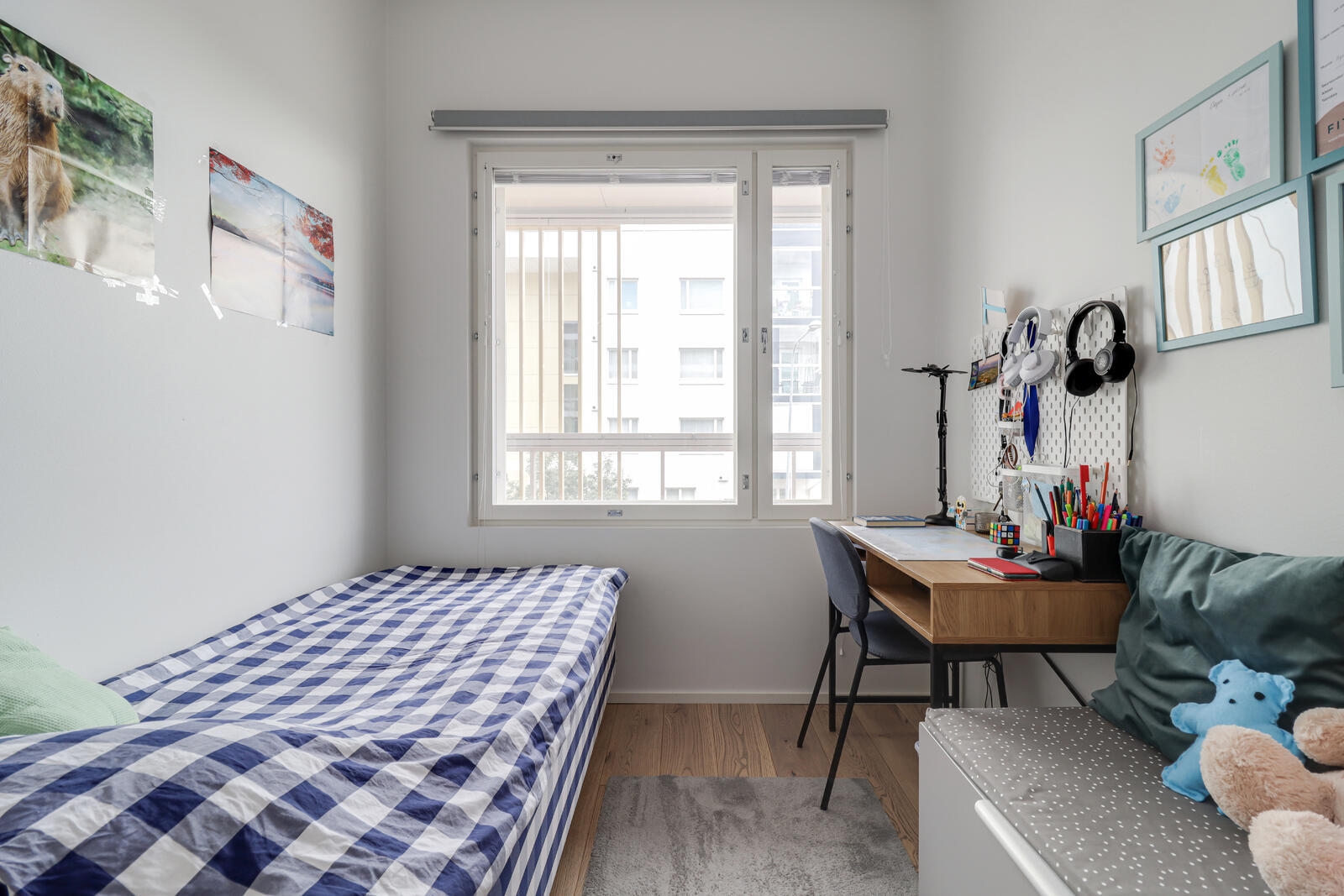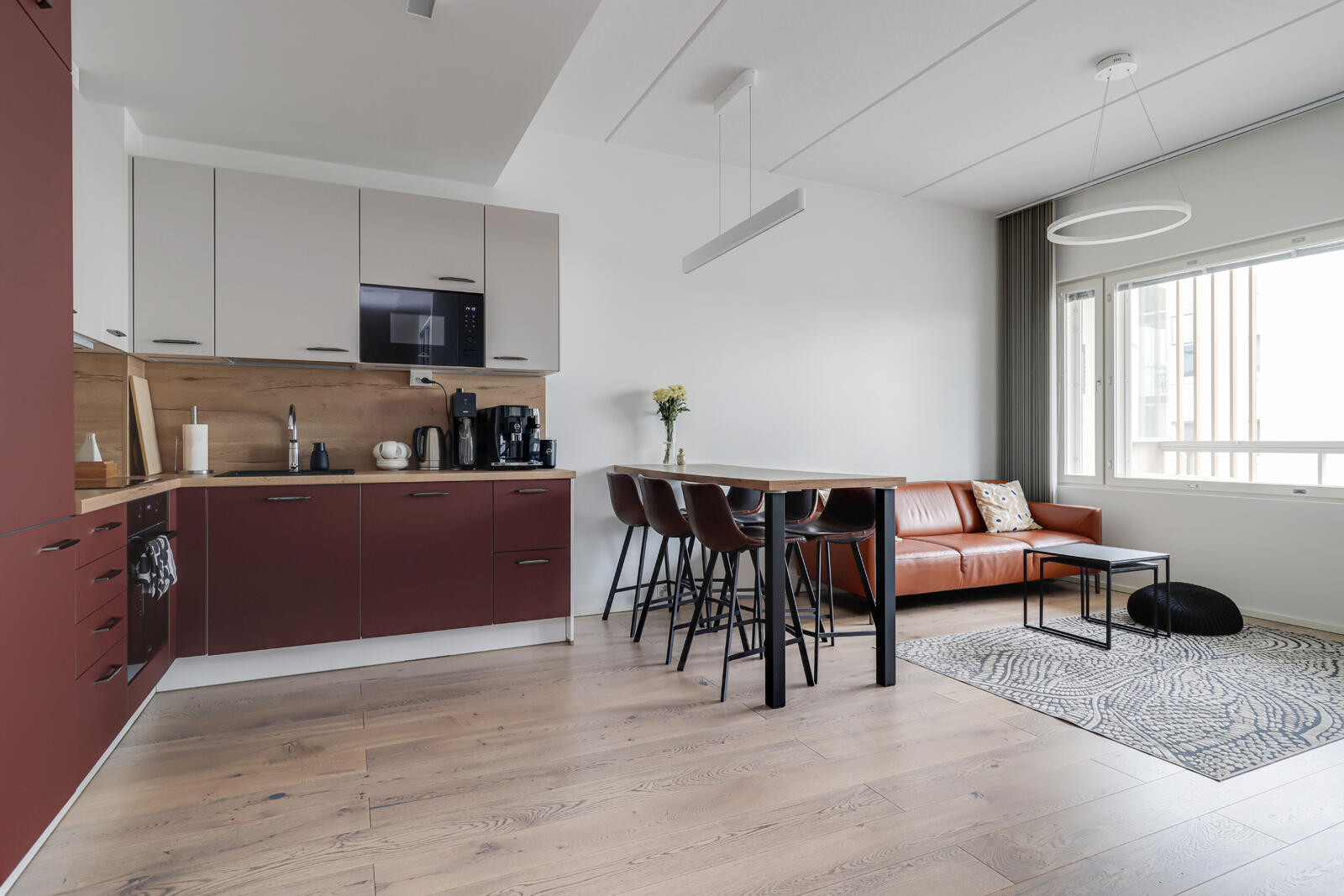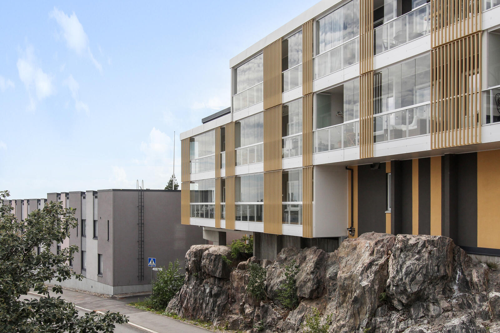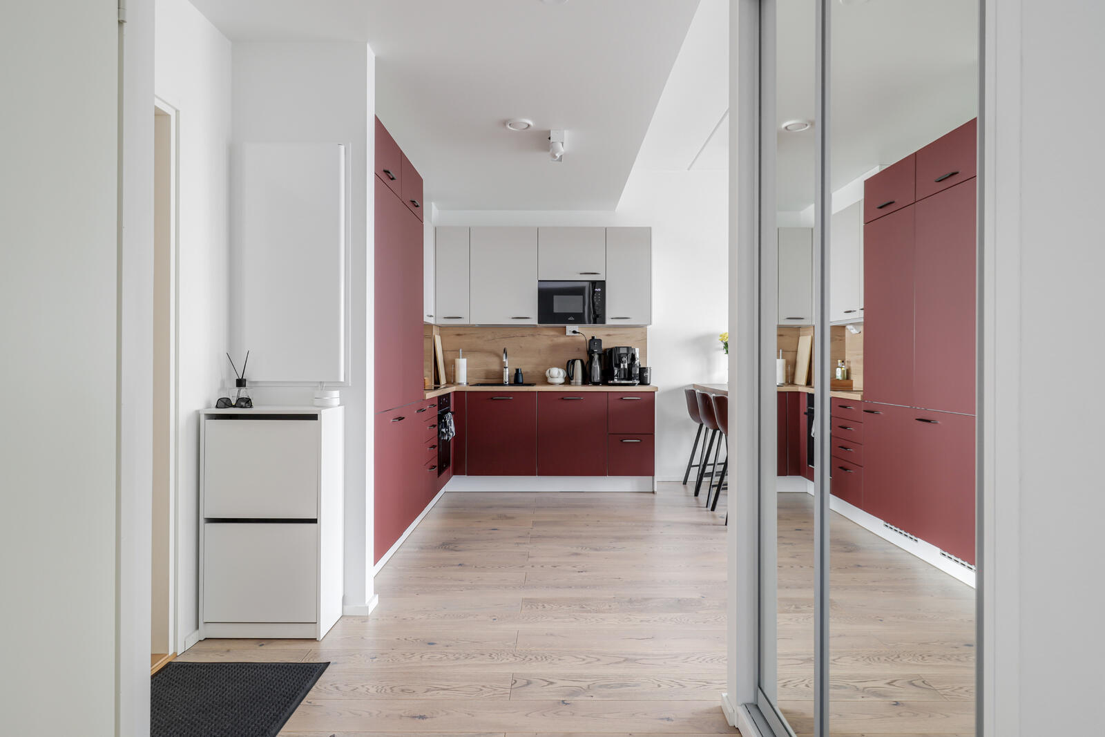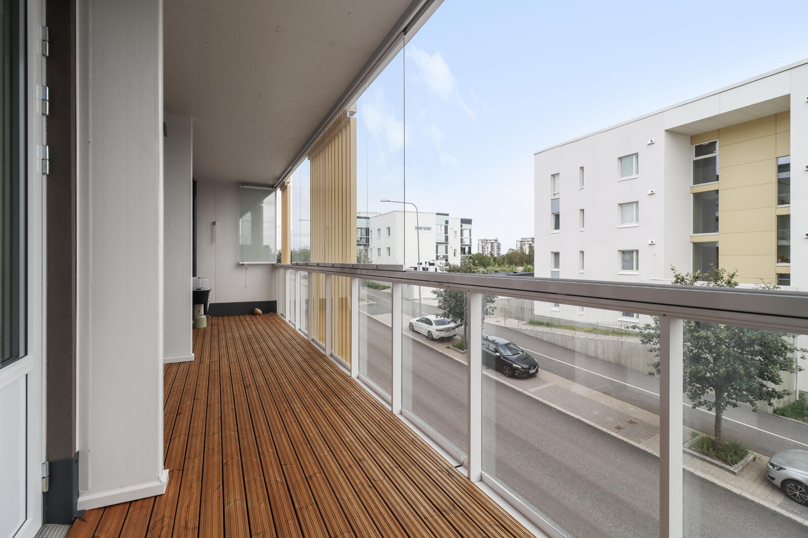 Tämä erittäin siististi asuttu kolmio sijaitsee vasta 2022 valmistuneessa talossa, käytännöllisesti katsoen aivan Viikinmäen kallion laella, ja se tarjoaa sinulle modernin ja värimaailmaltaan tyylikkään pohjan sisustaa siitä mieleisesi. Olohuoneen ja keittiön avoin yhdistelmä jatkuu tilavalle, koko asunnon, peräti kolmen huoneen levyiselle, lasitetulle, idän ja etelän väliin, kaakkoon avautuvalle parvekkeelle. Isomman makuuhuoneen vieressä on monen kaipaama arjen pelastus, eli vaatehuone ja tammiparketit tuovat laatua! Asunnosta saa vaikutelman, että neliöitä olisi enemmänkin; reilu huonekorkeus, eteisen kaapiston peililiukuovet ja tilava kylpyhuone, tuovat näin tilan tuntua, joka jatkuu luontevasti läpi asunnon. Taloissa on mukavuuslämmitys, rumia lämpöpattereita ei ole ollenkaan, lämpö on tasaista, myös kesällä, jolloin asunto pysyy sopivana, eikä kuumene liikaa.