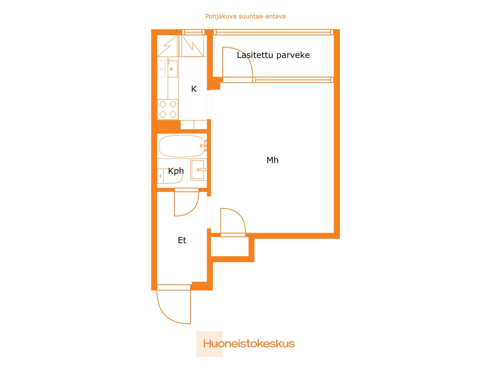 | Huoneistoselitelmä | 1 h, kk, kph, lasitettu parveke (Yj. 1 h+kk) |