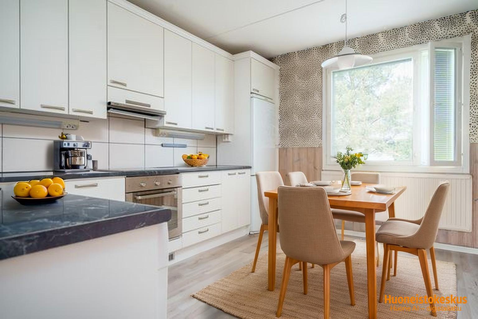 Nyt tarjolla valoisa ja tilava kolmio, joka sijaitsee erinomaisella paikalla Humppilan palveluiden keskellä. Avaran pohjaratkaisun ansiosta tässä läpitalon huoneistossa tilat ovat väljät, ja perheen arki pyörii mukavasti.