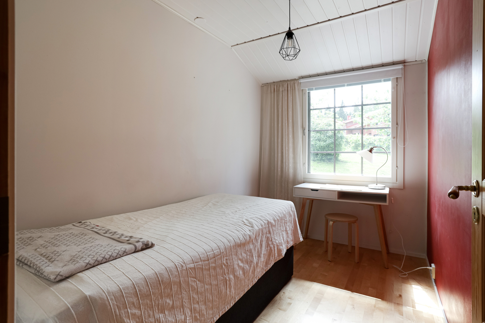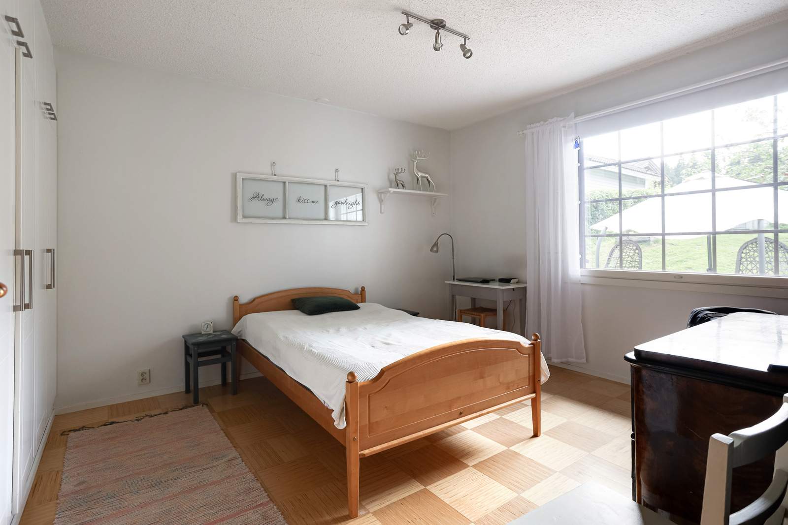| Makuuhuoneen kuvaus | Seinät (tapetti), lattiat (parketti) |