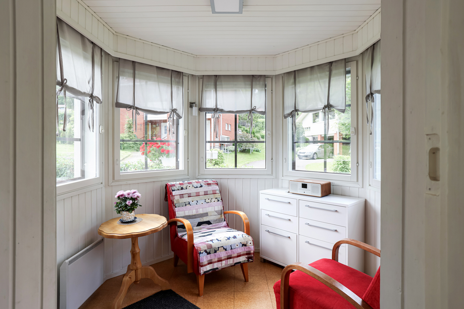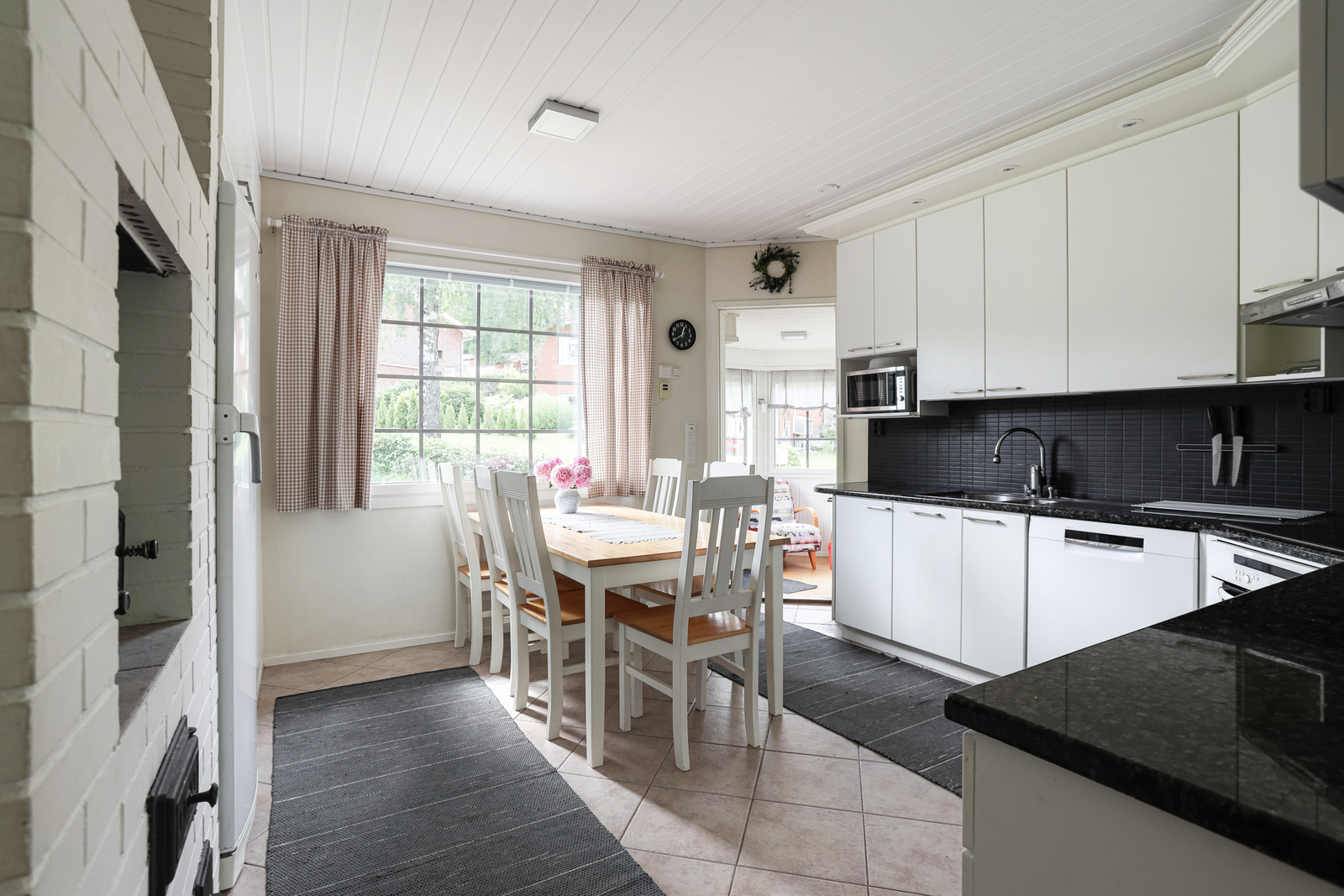 Kodissa on avara ja valoisa olohuone. Keittiöstä on käynti katetulle terassille, mikä tekee kesäpäivistä nautinnollisia. Makuuhuoneet ovat tilavia ja varustettu parkettilattioilla. Kaksi erillistä wc:tä. Saunassa puukiuas mutta myös sähkökiuasvalmius.