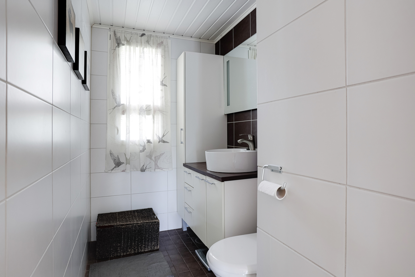 | Kylpyhuoneen kuvaus | Allaskaappi, lattialämmitys, suihku ja kiinteät valaisimet, seinät (kaakeli), lattiat (laatta) |