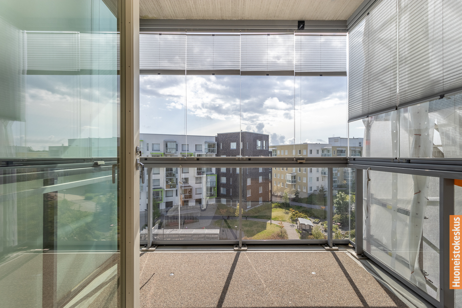 | Muut kaupan kannalta merkittävät tiedot | Yhteisistä tiloista löytyy sauna talon ylimmässä kerroksessa kivalla vilvoitteluparvekkeella, alhaalla pesutupa, asukasolohuone, verstas, irtainvarastot jokaiselle huoneistolle, lastenvaunuvarasto pesupisteellä sekä paljon tilaa polkupyörille. |