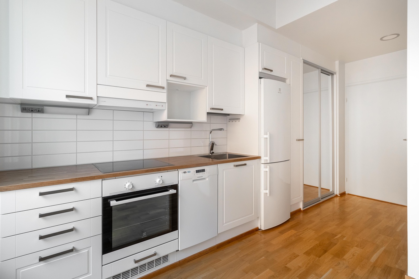 Tämä kodikas ja valoisa yksiö sijaitsee suositulla ja kehittyvällä Kruunuvuorenrannan alueella.