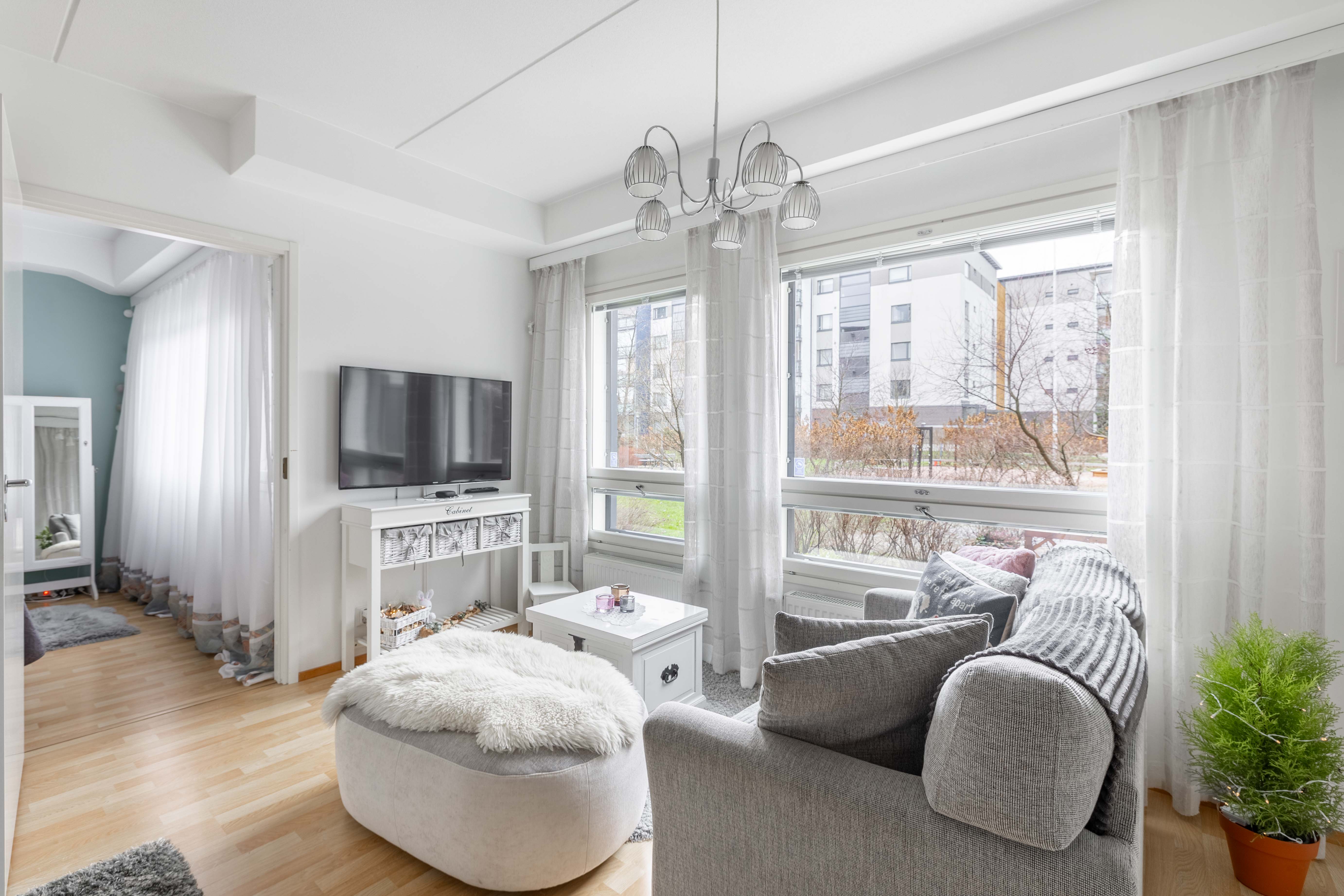 Olohuoneen kuvaus Seinät (maali), lattiat (laminaatti)