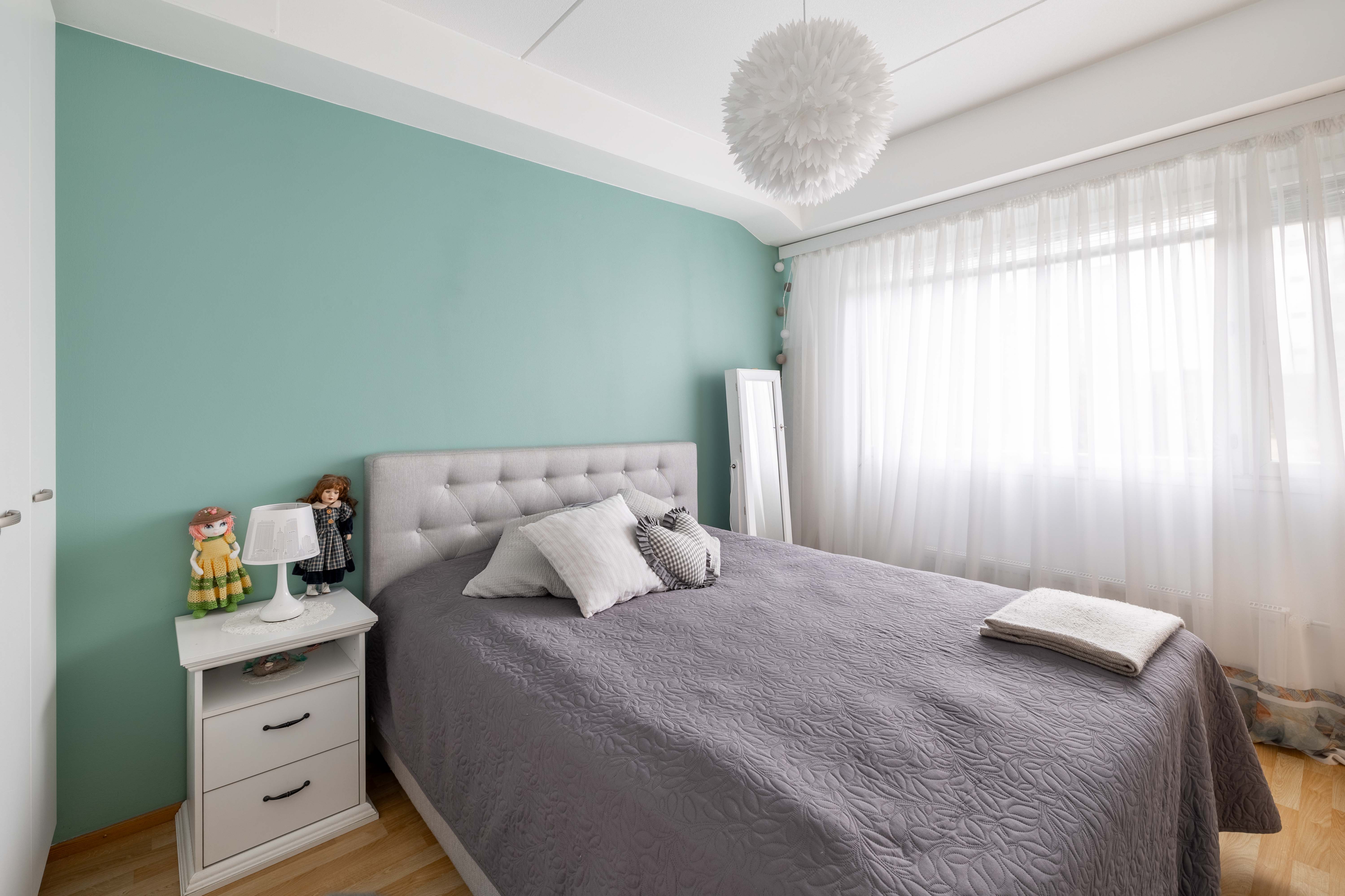 Makuuhuoneen kuvaus Lukumäärä: 1, seinät (maali), lattiat (laminaatti)