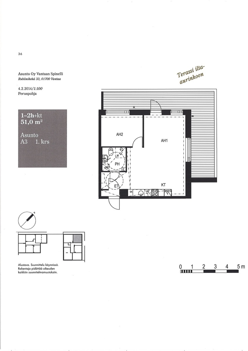 Moderni kaksio omalla tontilla – terassillinen helmi Kivistössä