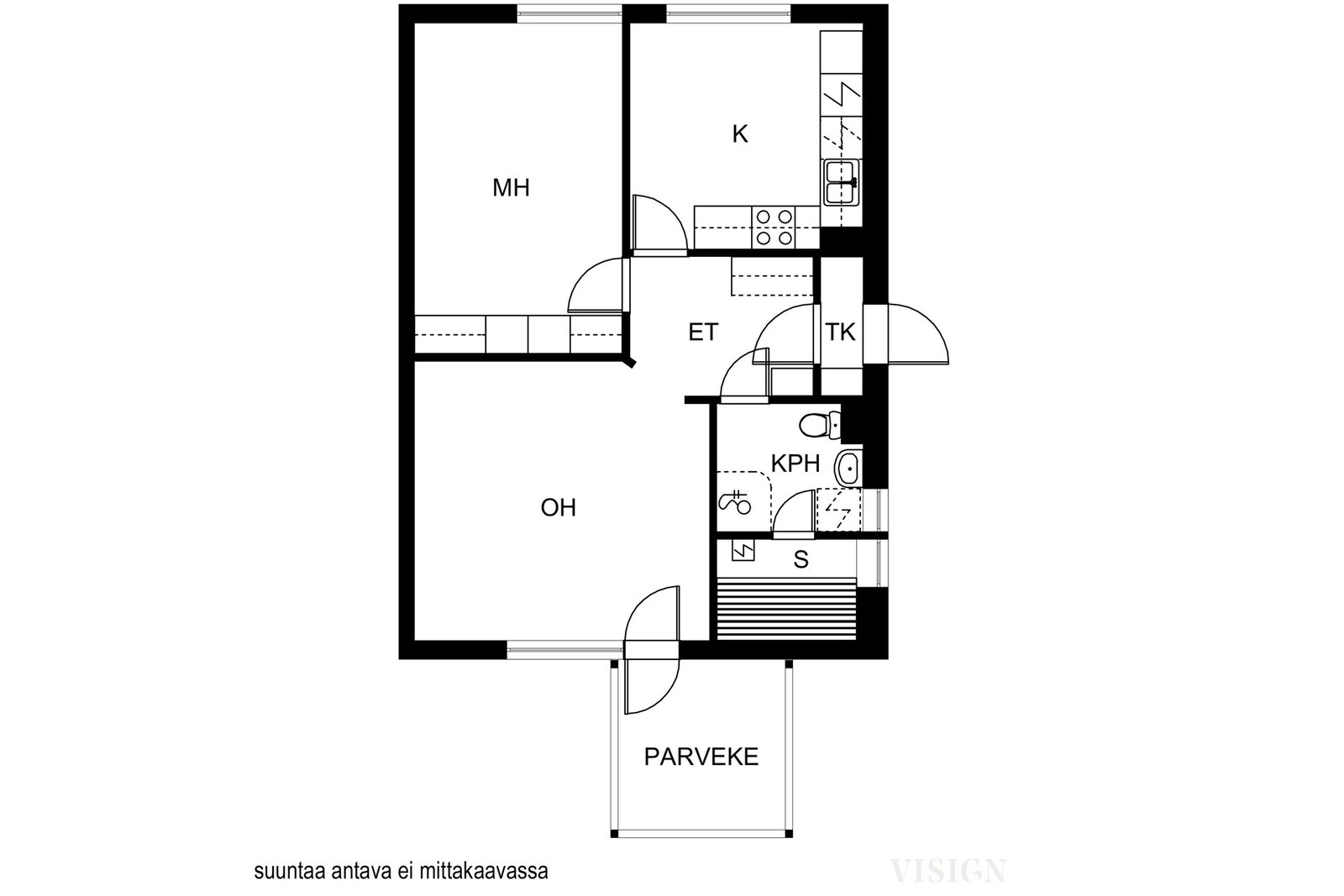 | Huoneistoselitelmä | 2 h, k, kh/wc, s, p (Yj 2 h+k+s) |
