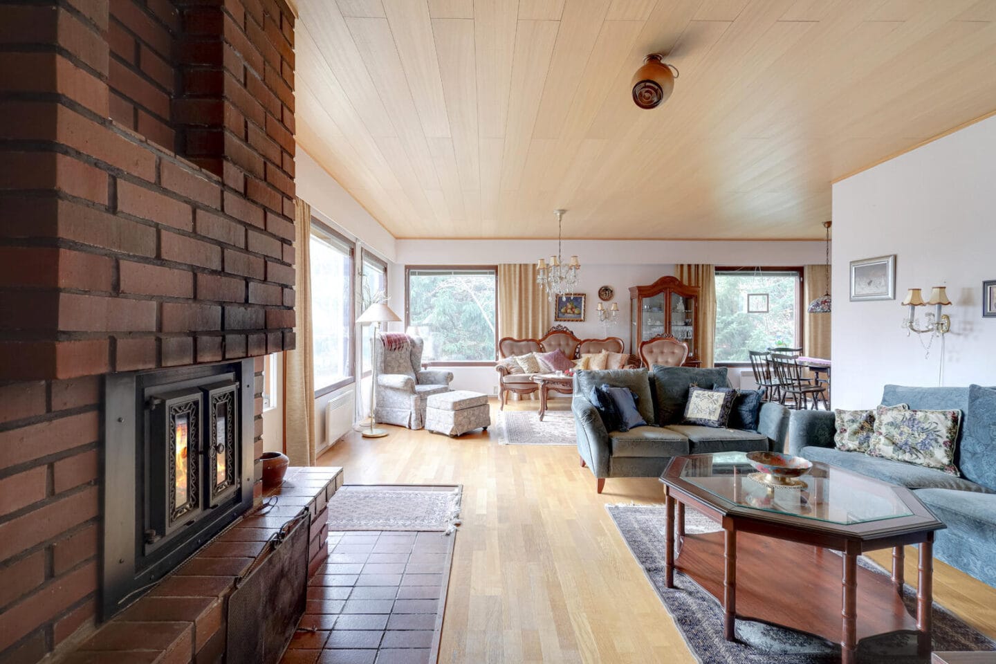 Talo on rakennettu vuonna 1975 ja tarjoaa toimivan ja esteettömän pohjaratkaisun, joka sopii erinomaisesti eri kokoisille perheille. Asuintilat ovat avarat ja valoisat: iso olohuone yhdistyy ruokailutilaan, ja makuuhuoneita on 3–4 tarpeen mukaan. Lisäksi talossa on erillinen wc, pesuhuone, sauna sekä kaksi tunnelmallista takkaa – toinen olohuoneessa ja toinen takkahuoneessa.