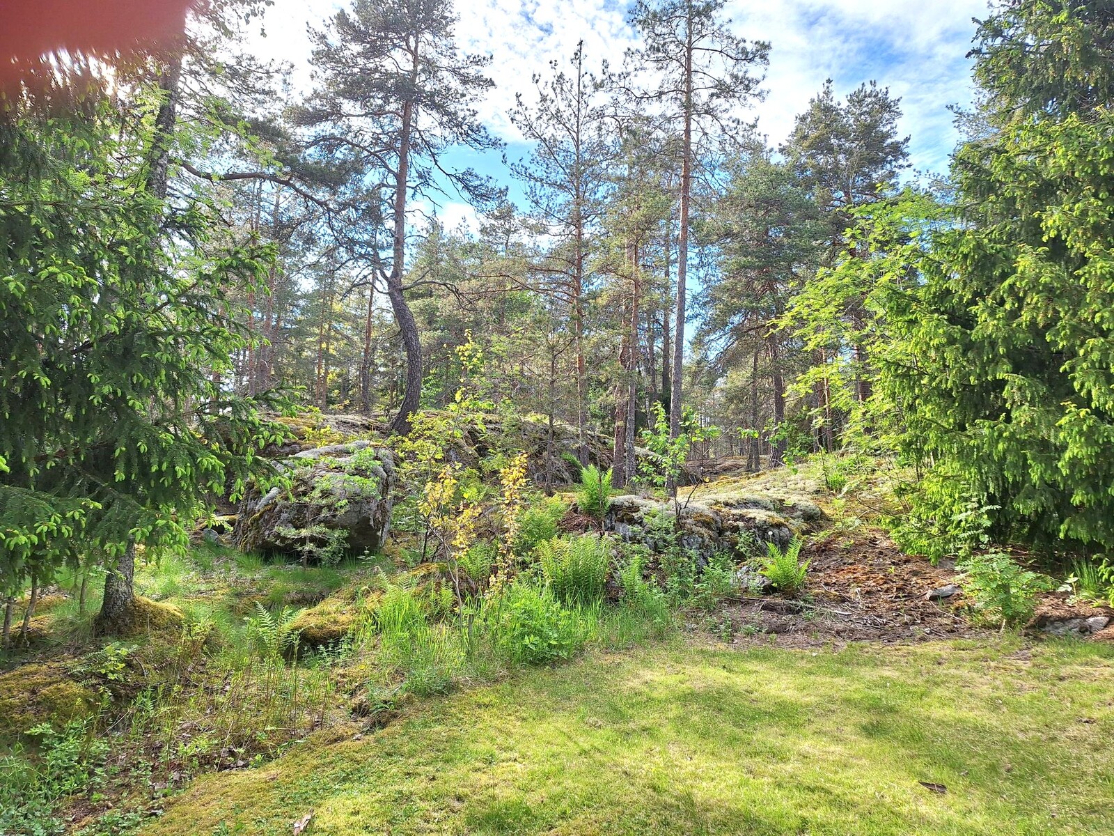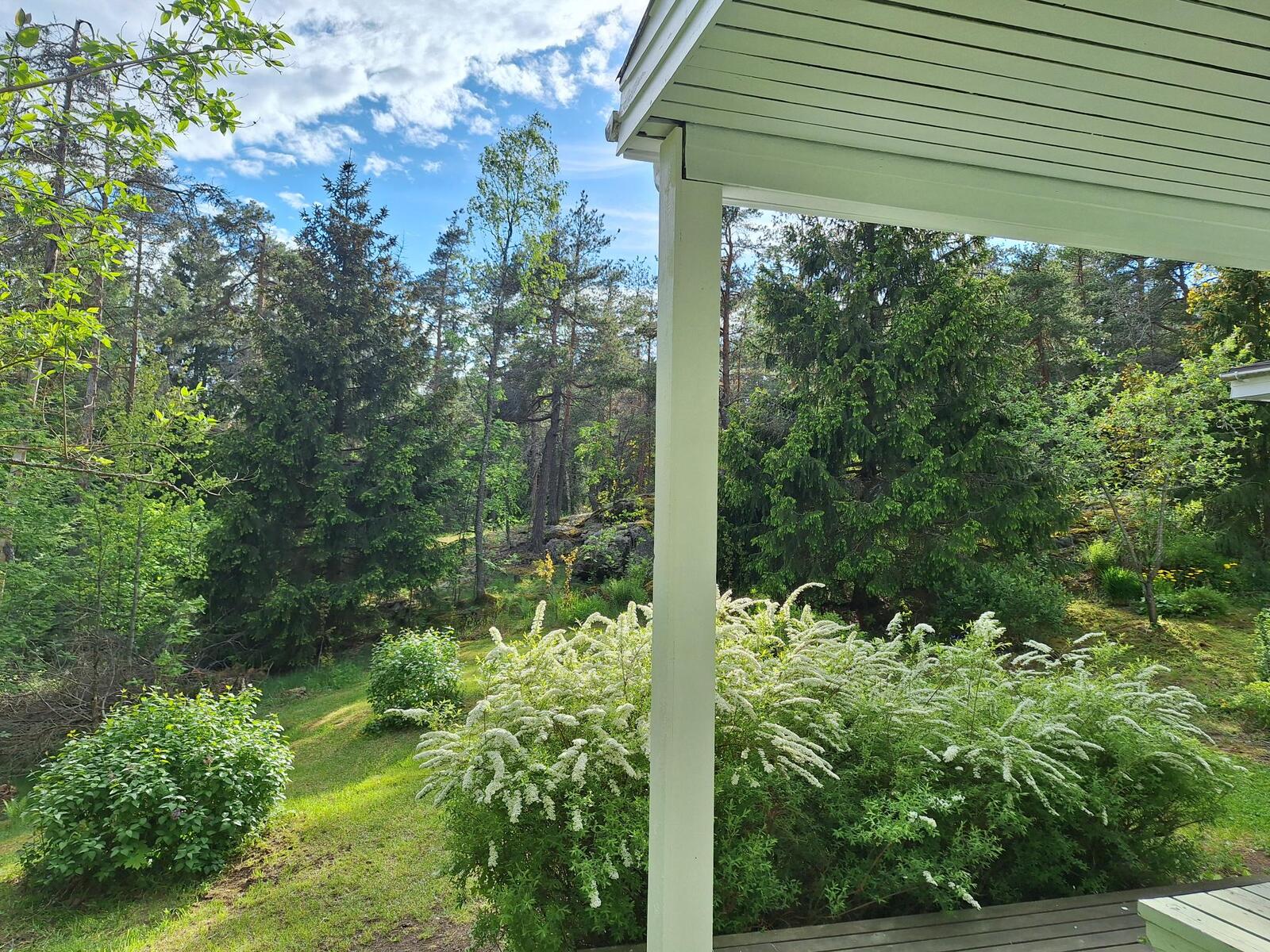 Takapihalta avautuvat kauniit kallioiset maisemat ja metsäpolut, ja valaistulle pururadalle on vain muutama sata metriä – täydellinen ympäristö ulkoilusta ja luonnonrauhasta nauttivalle.