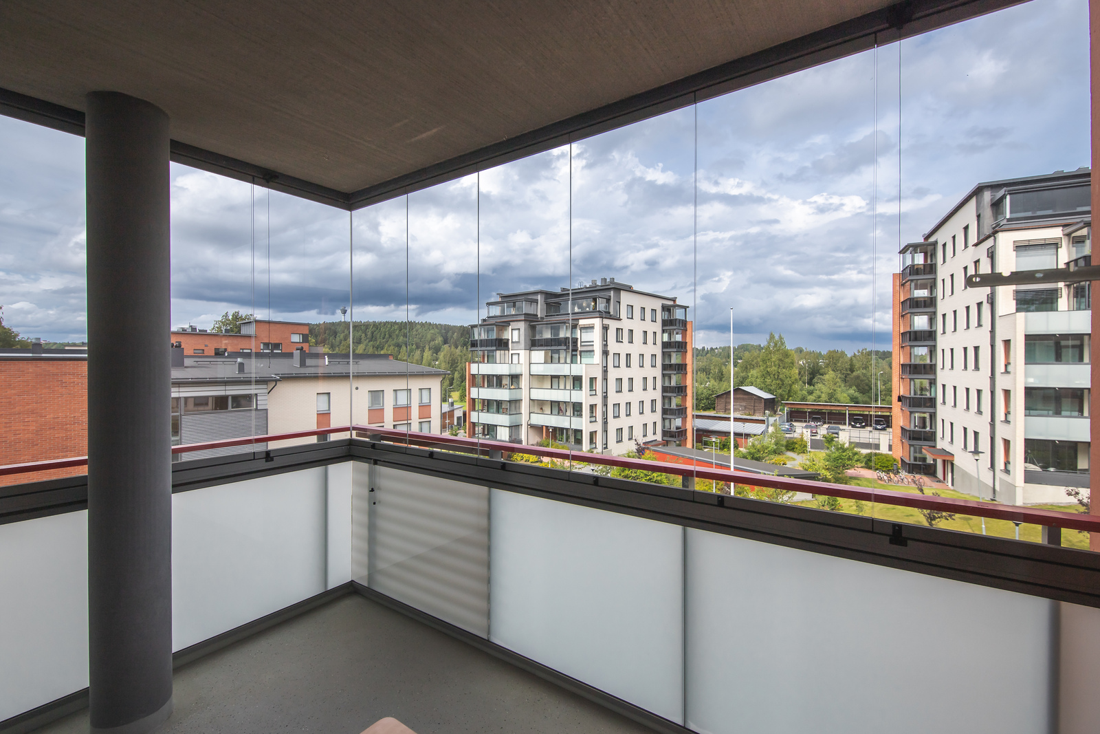 Avara keittiö ja olohuone muodostavat yhtenäisen ja valoisan oleskelutilan, jonka jatkeena on tilava lasitettu parveke. Makuuhuoneessa on reilusti kaappitilaa ja lisäksi käytössäsi on erillinen vaatehuone. Kylpyhuone on poikkeuksellisen tilava, ja oma sauna viimeistelee arjen mukavuudet.