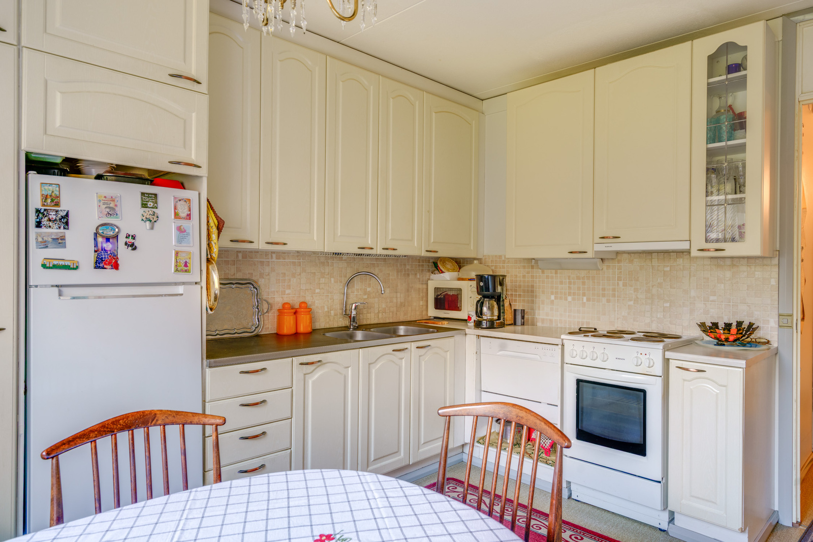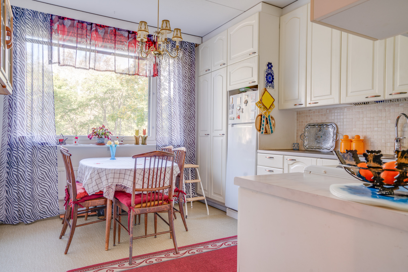 | Keittiön kuvaus | Liesi (sähköliesi), työtasot (laminaatti ja metalli), seinät (maali, tapetti ja osalaatoitus), lattiat (muovimatto), astianpesukone, jenkkikaappi, liesituuletin ja liesi |
