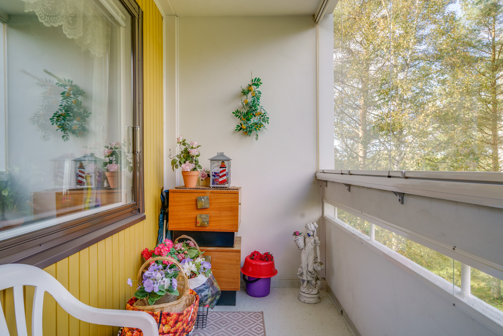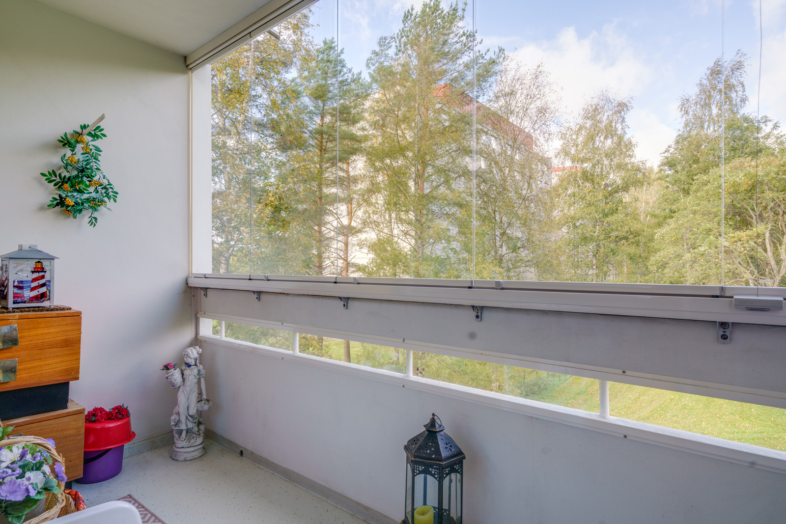 59 m² huoneisto tarjoaa avaran pohjaratkaisun, jossa tilavat huoneet ja lasitettu parveke puiston suuntaan luovat viihtyisän ja rauhallisen tunnelman. Kylpyhuone on remontoitu vuonna 2015, ja se vastaa nykyajan vaatimuksia.