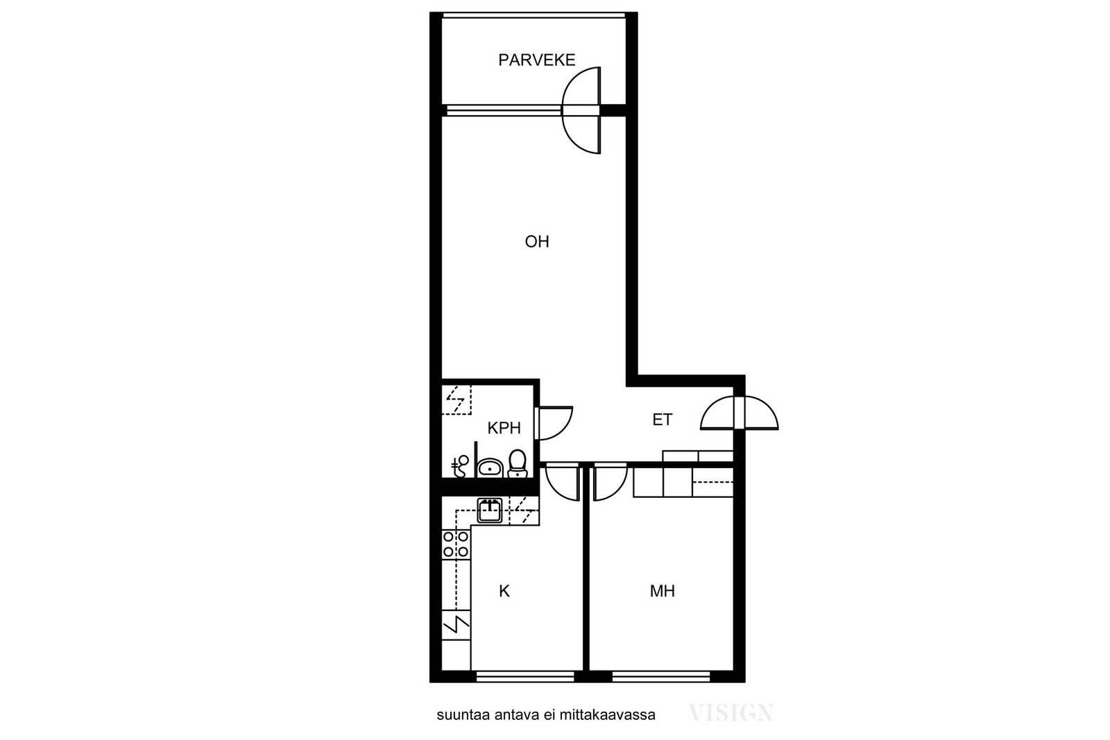 | Huoneistoselitelmä | 2 h, k, kph, lasitettu parveke (Yj. 2h+k) |
