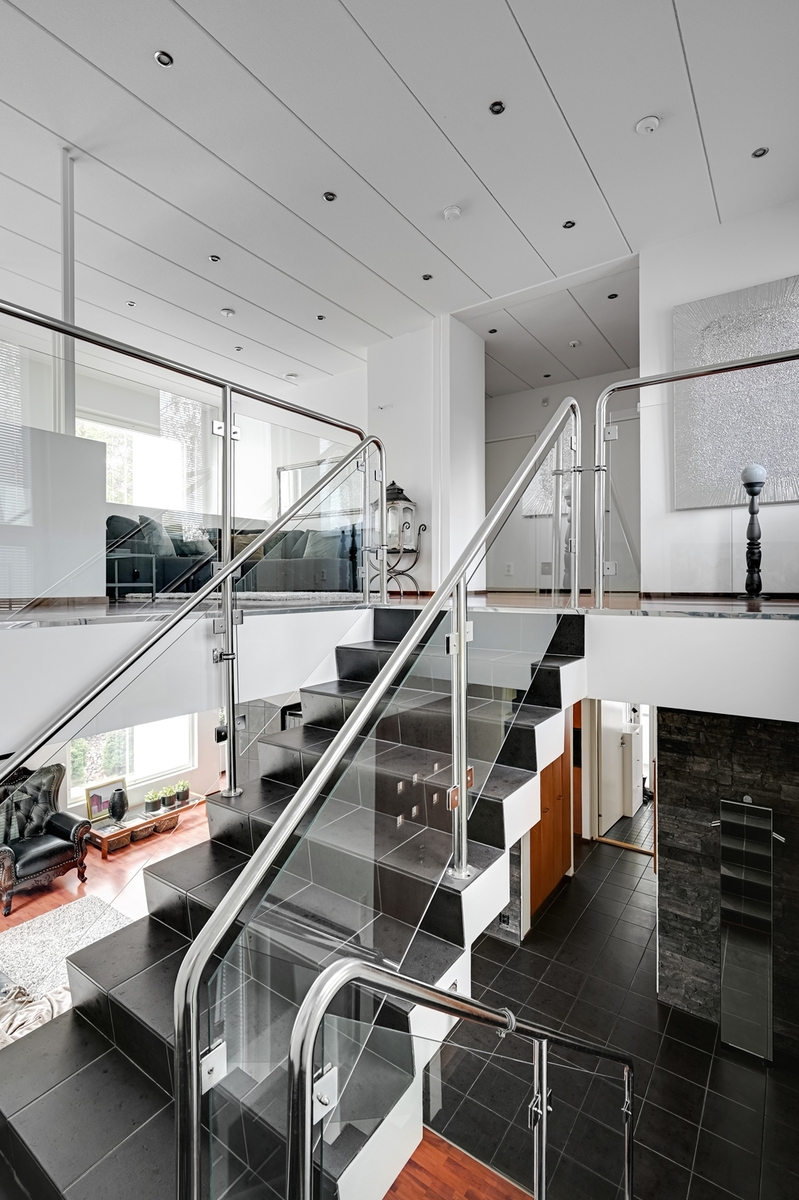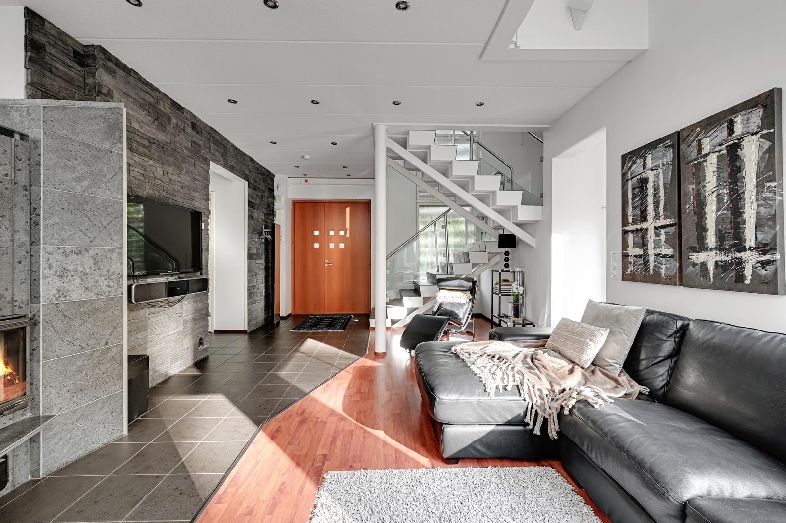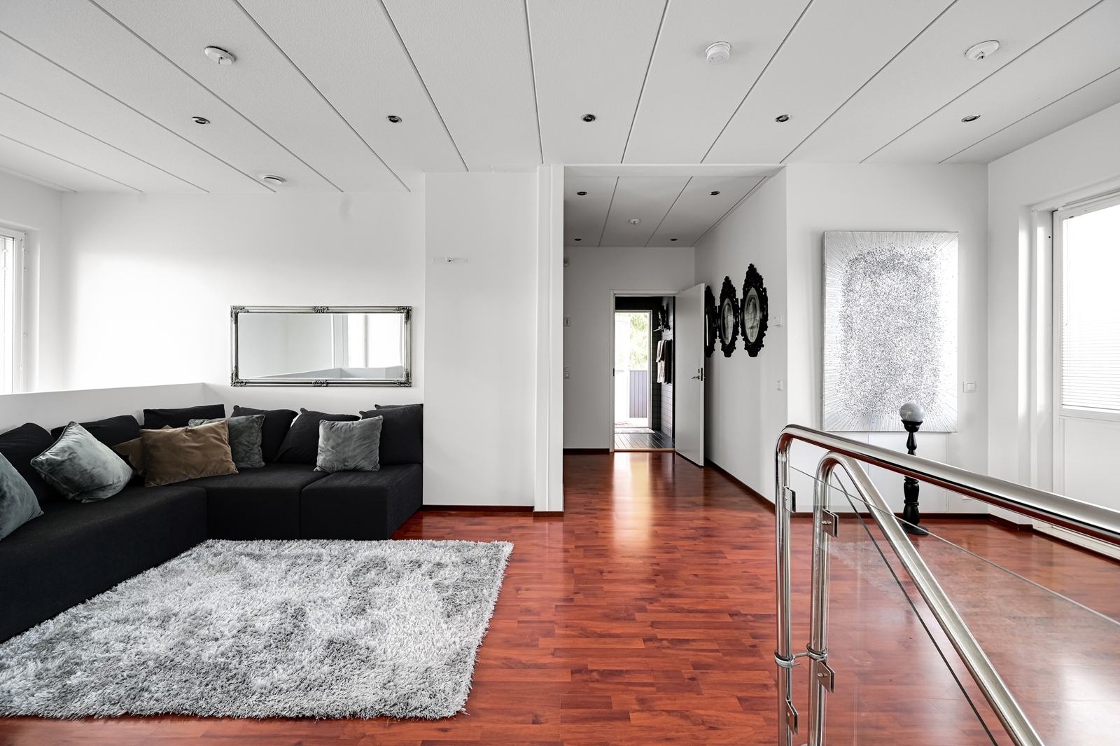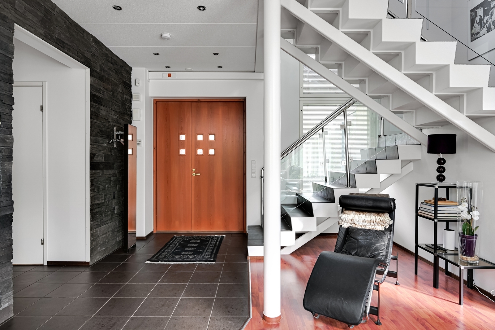 Paljon upeita design elementtejä talossa, kaunis muotoilu ja valoisat tilat.