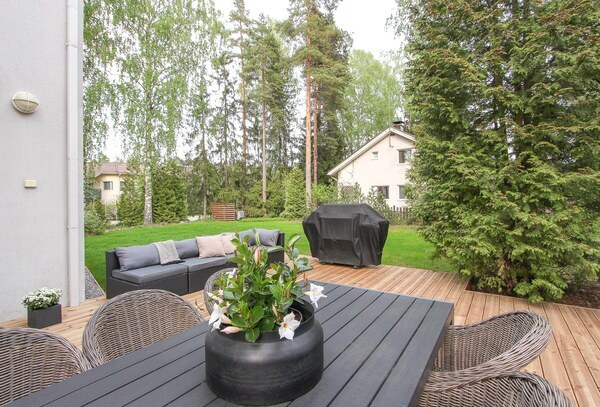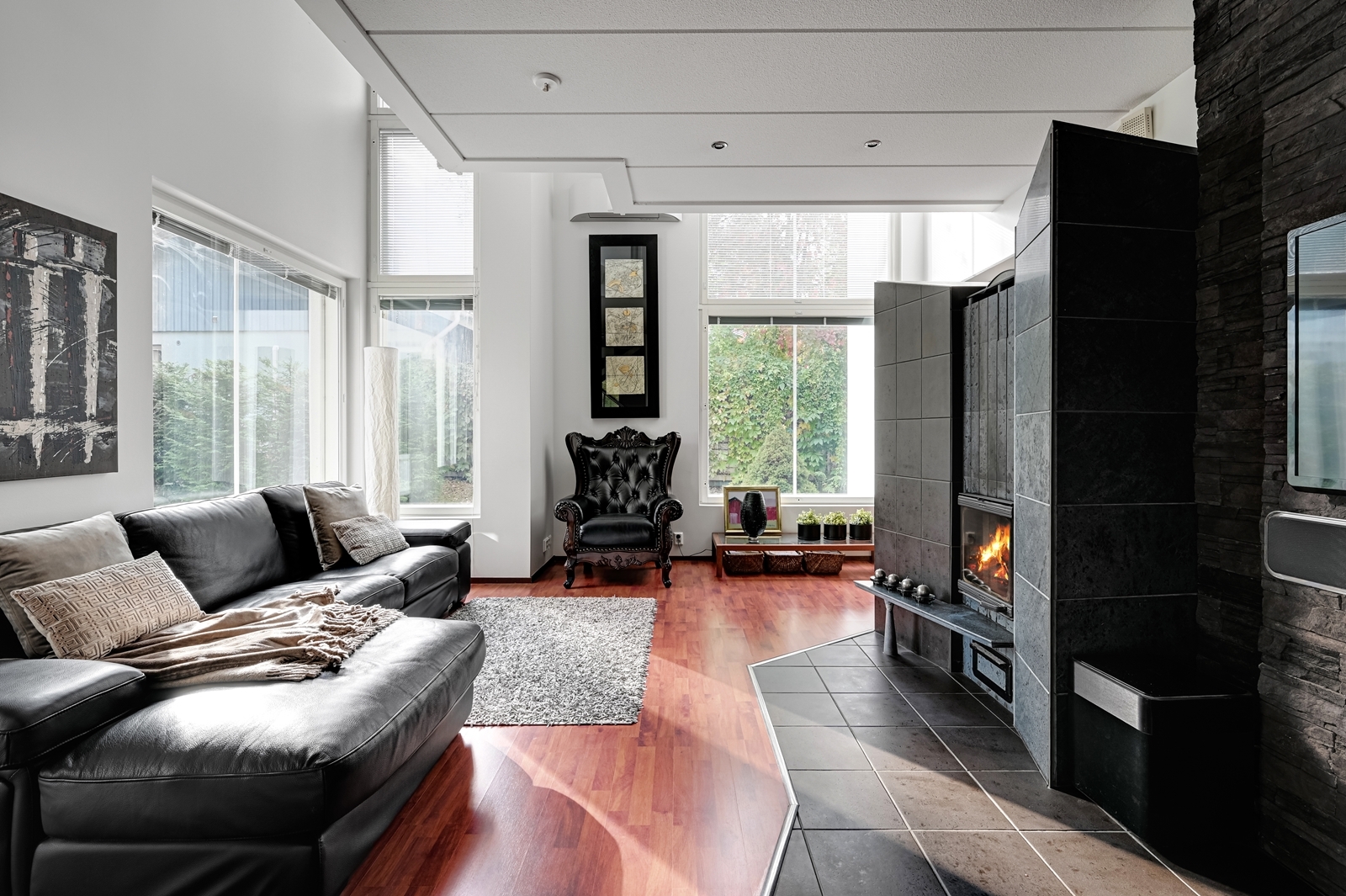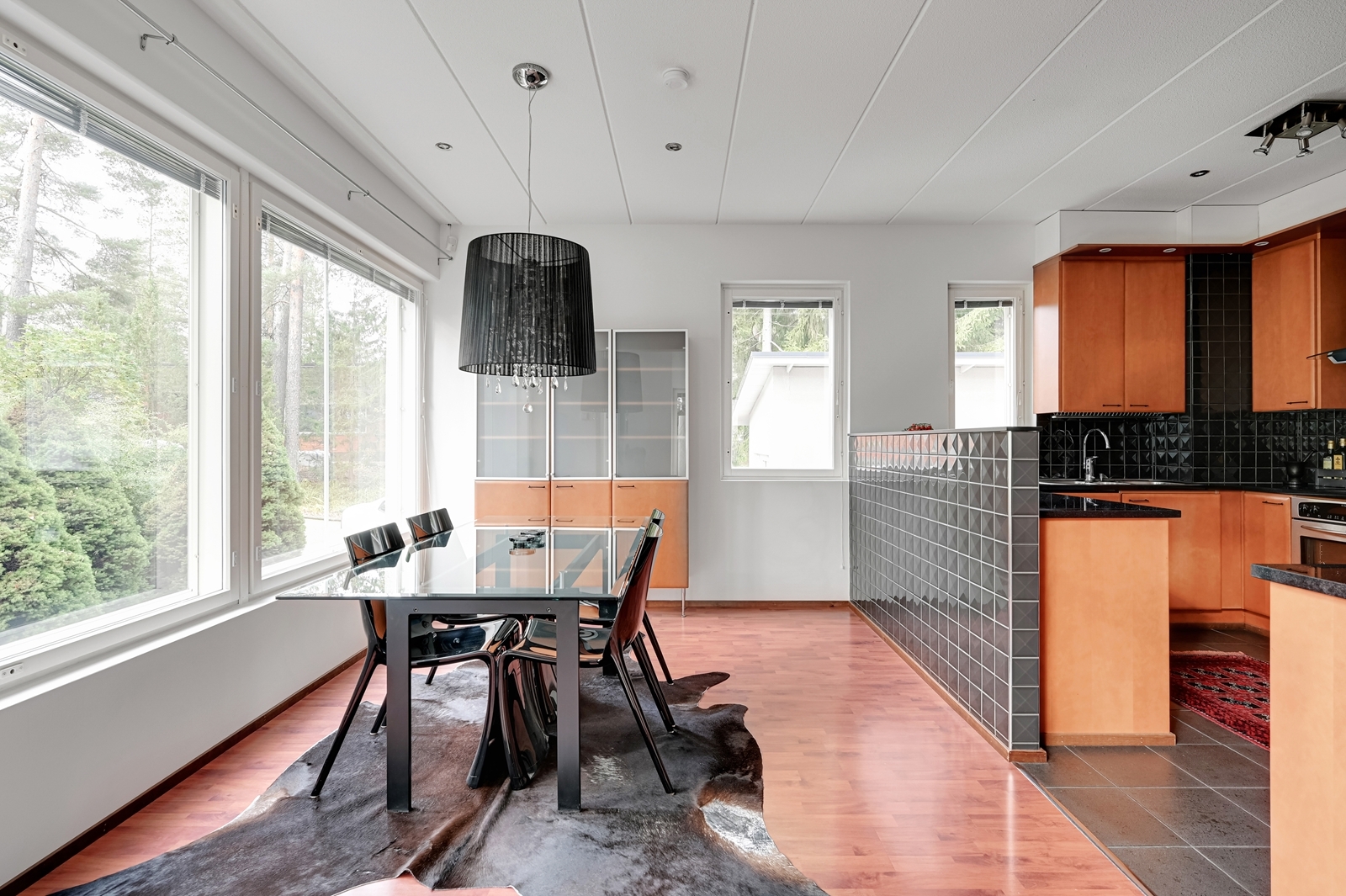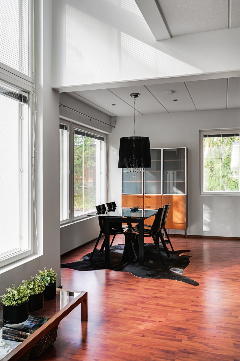 Paljon upeita design elementtejä talossa, kaunis muotoilu ja valoisat tilat.