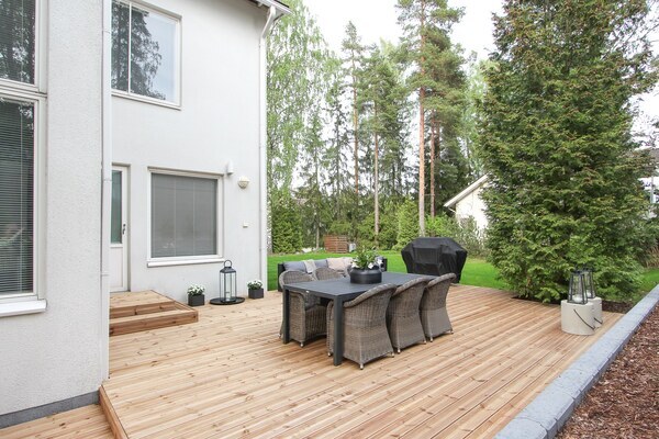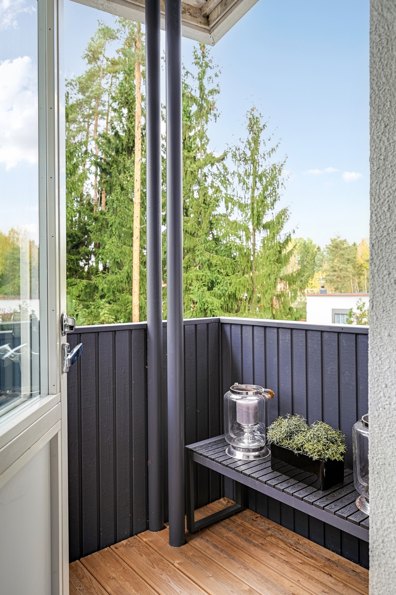Upea terassiparveke, saunaparveke ja iso terassi.